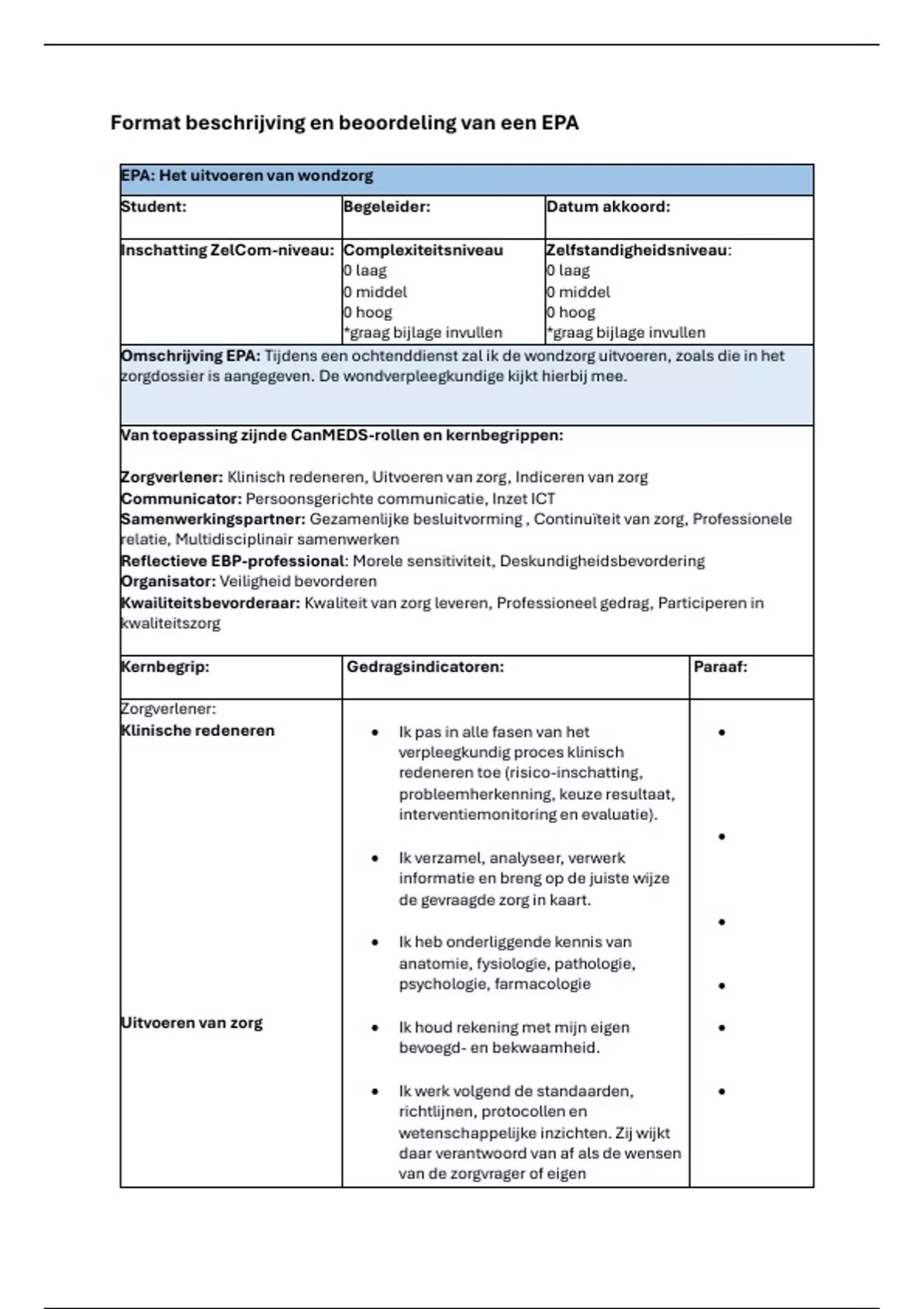 Omschrijving EPA: Tijdens een ochtenddienst zal ik de wondzorg uitvoeren, zoals die in het