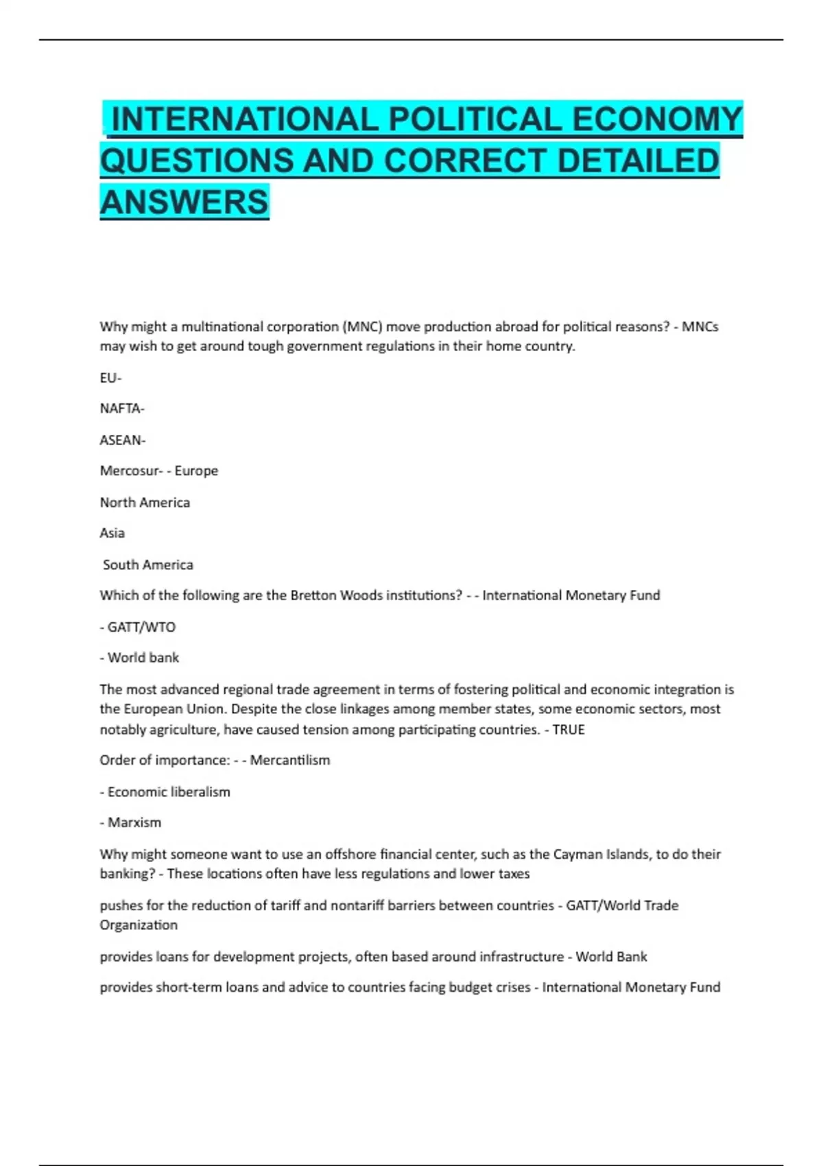 QUESTIONS AND CORRECT DETAILED