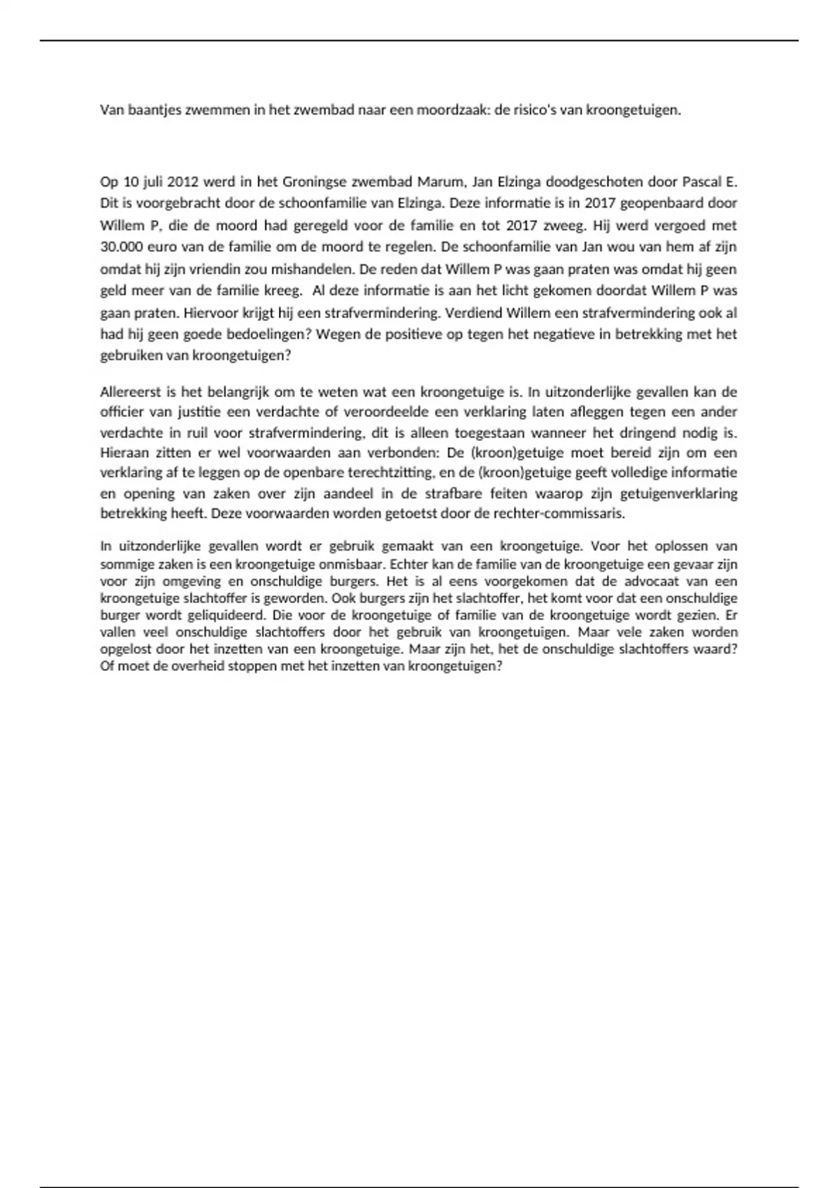 gaan praten. Hiervoor krijgt hij een strafvermindering. Verdiend Willem een strafvermindering ook al
