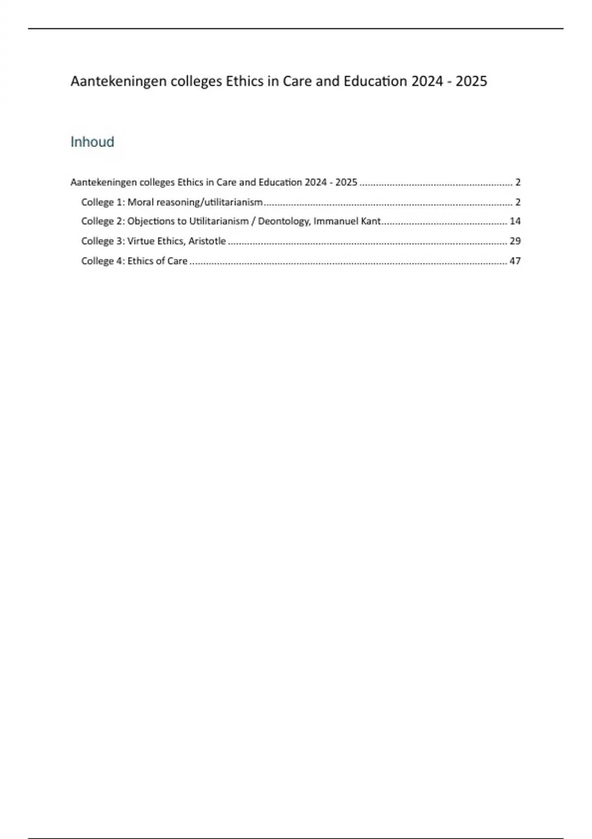 Aantekeningen colleges Ethics in Care and Education 2024 - 2025 ........................................................ 2