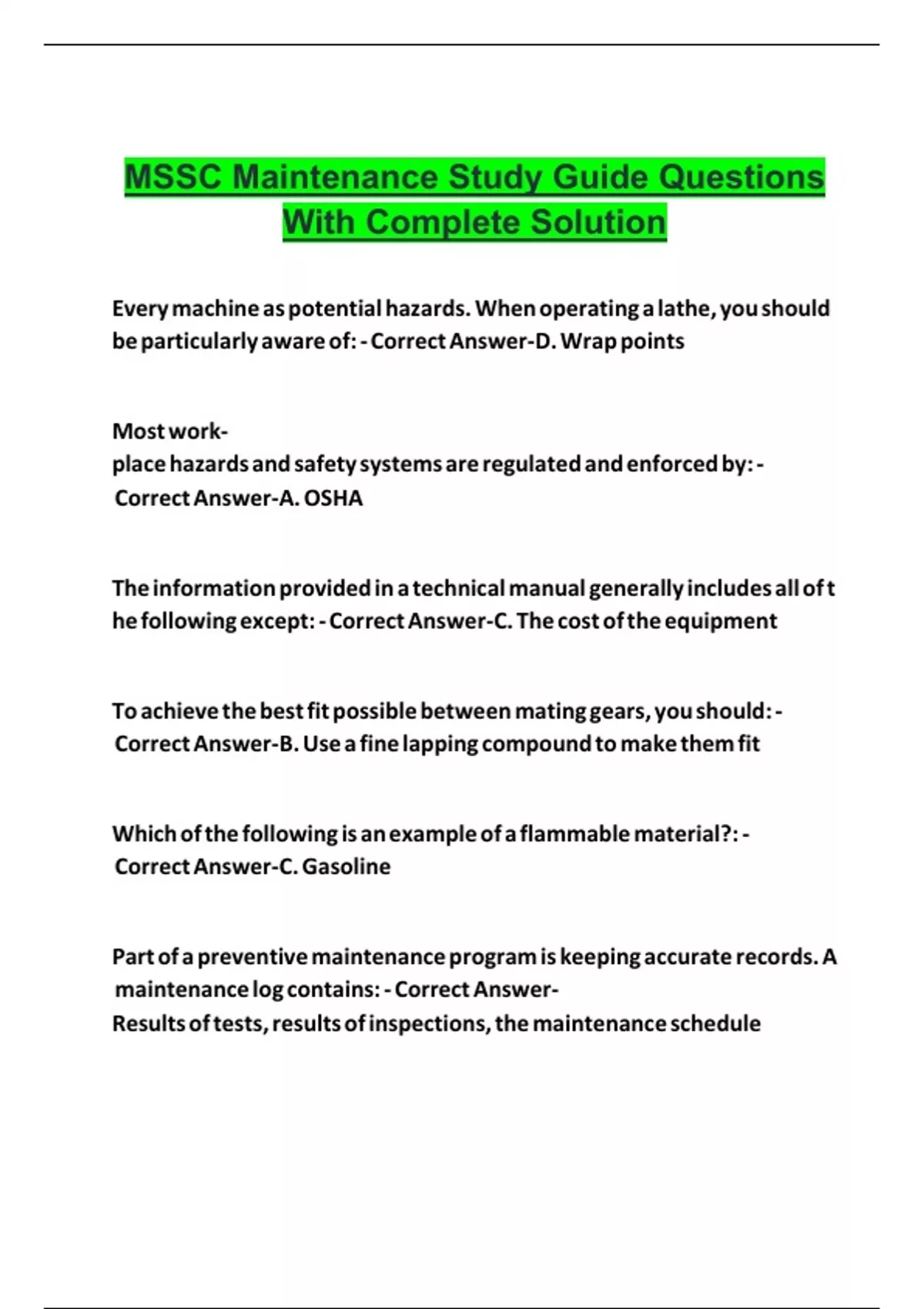 MSSC Maintenance Study Guide Questions With Complete Solution
