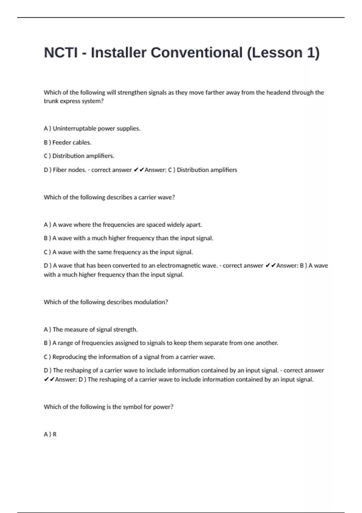 NCTI - Installer Conventional (Lesson 1) with verified answers /passed