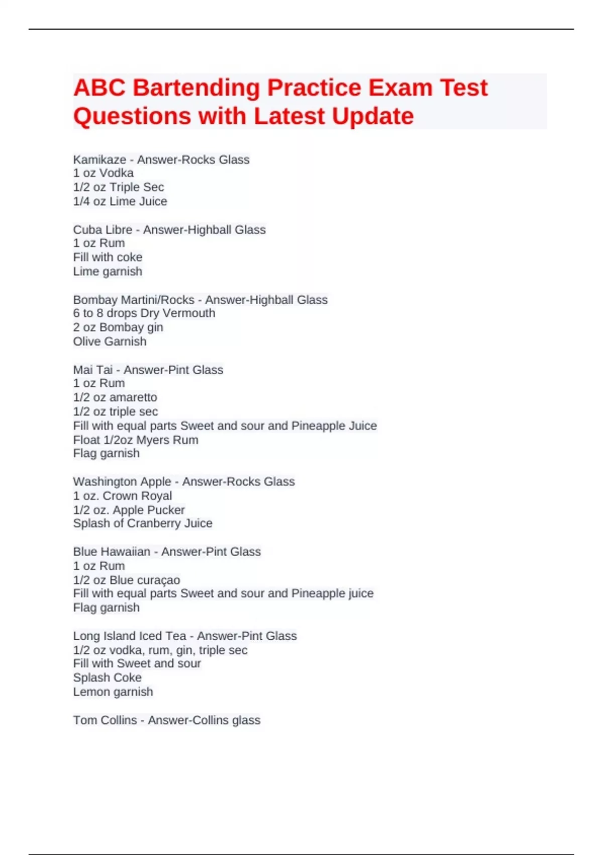 ABC Bartending Practice Exam Test Questions with Latest Update