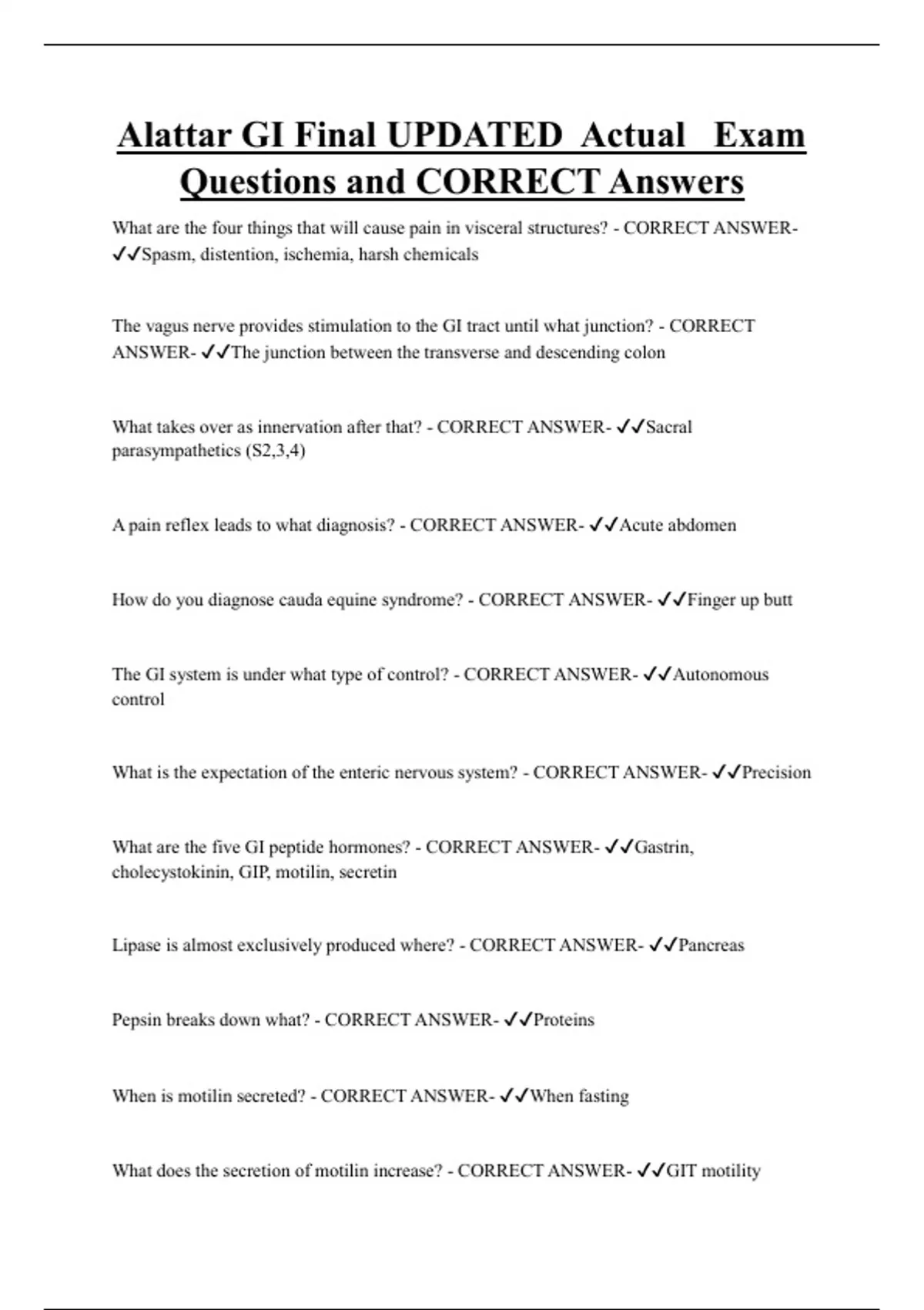 Alattar GI Final UPDATED Actual Exam Questions and CORRECT Answers