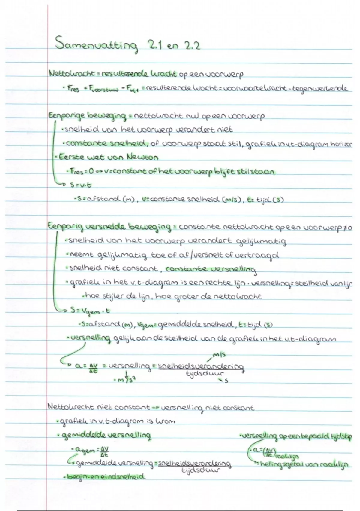 Samenvatting Natuurkunde - Newton - Havo 4 - Hoofdstuk 2 - Sport en verkeer Bewegingen