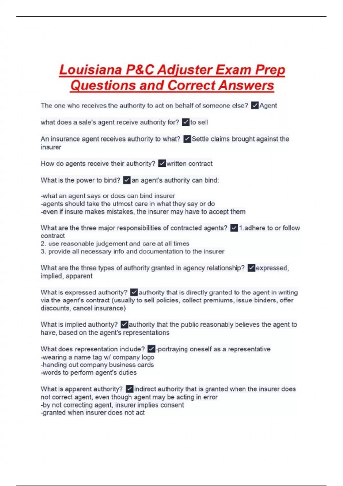 Louisiana P&C Adjuster Exam Prep Questions and Correct Answers