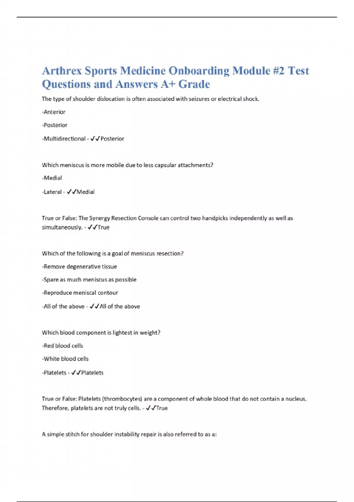 Arthrex Sports Medicine Onboarding Module #2 Test Questions and Answers A+ Grade