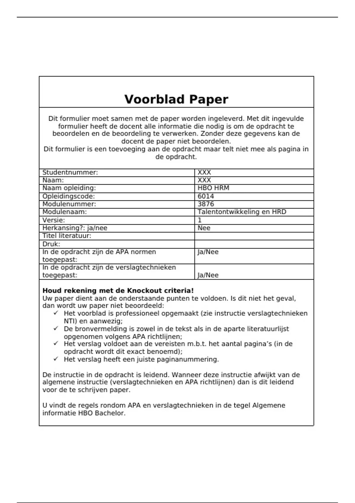 Uw paper dient aan de onderstaande punten te voldoen. Is dit niet het geval,