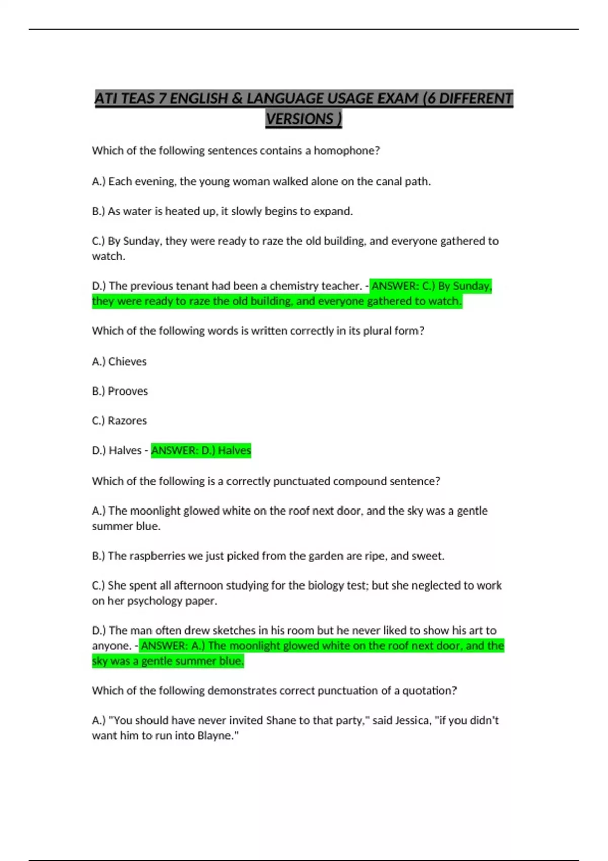 ATI TEAS 7 ENGLISH & LANGUAGE USAGE EXAM (6 DIFFERENT