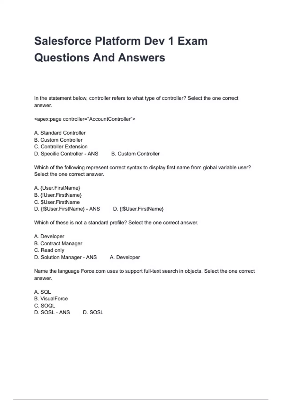 Salesforce Platform Dev 1 Exam Questions And Answers