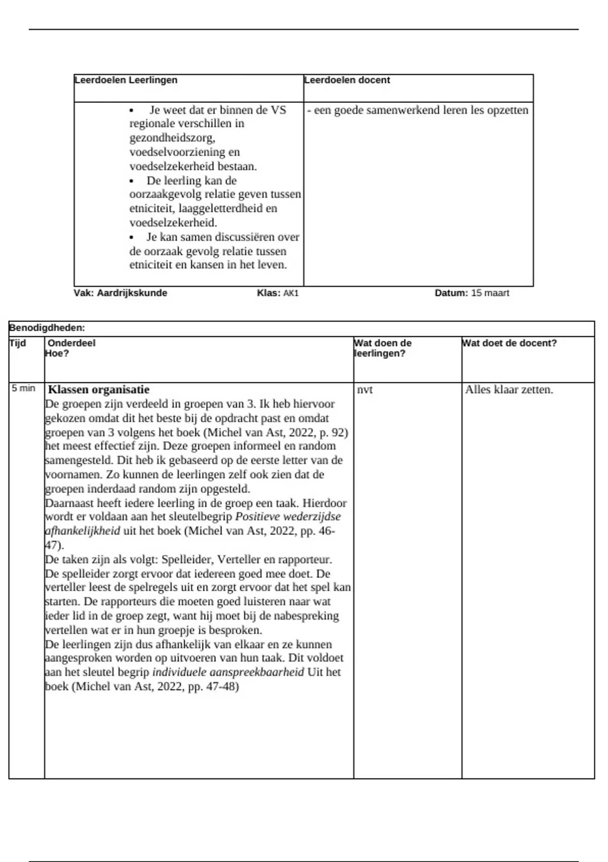 Vak: Aardrijkskunde Klas: AK1 Datum: 15 maart