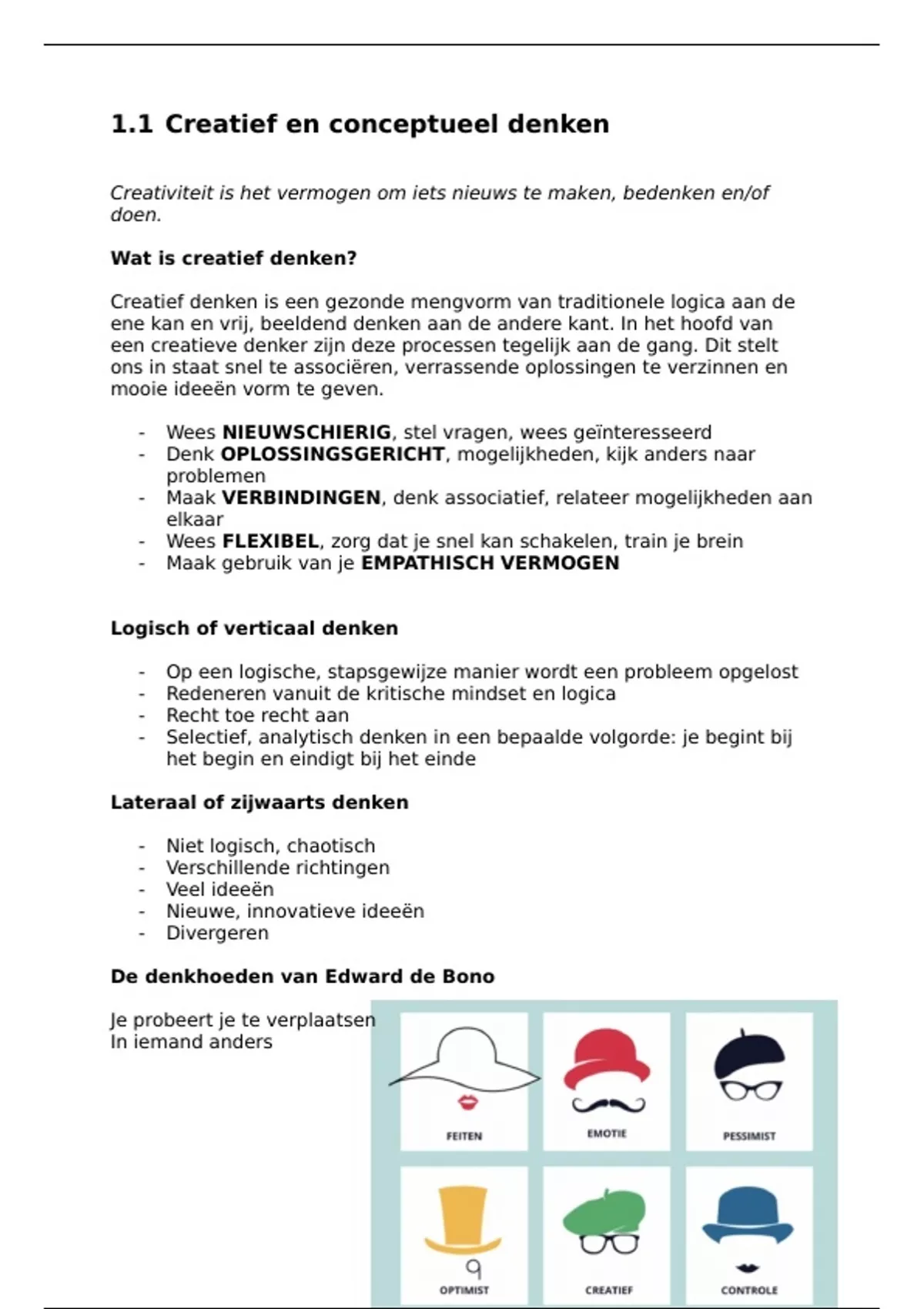 samenvatting van creatief en conceptueel denken leerjaar 1, 1e semester en eerste tentamen.