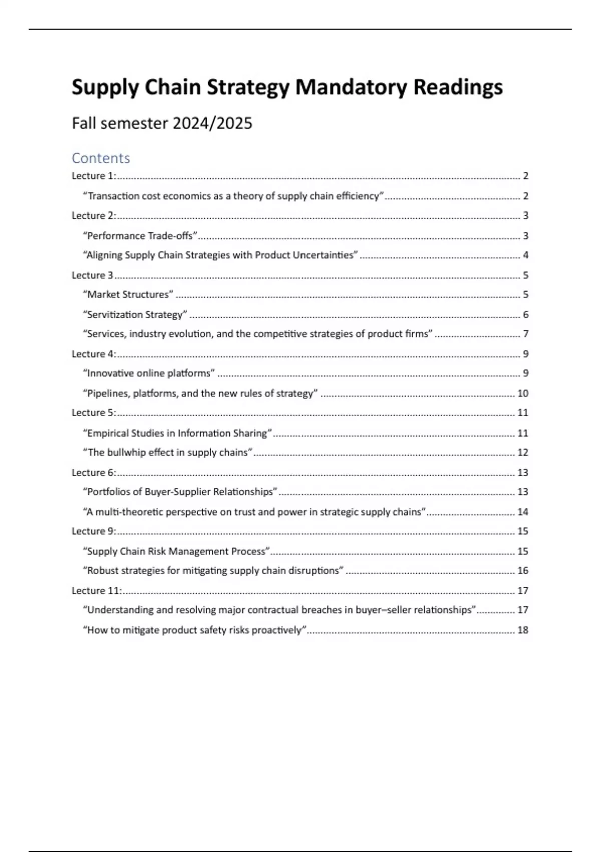 Supply Chain Strategy Mandatory Readings