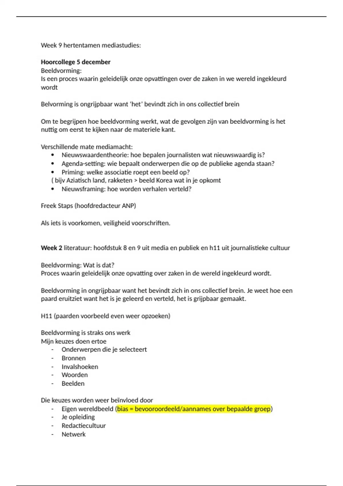 In dit document heb ik alles genotuleerd van de hoorcollege's van onderzoek naar het nieuws met verschillende voorbeelden om de stof behapbaarder te maken. Daarbij staat er ook een aantal oefen tentamenvragen in zodat je een beetje weet wat je kan verwachten van de vragen en hier alvast mee kan oefenen.
