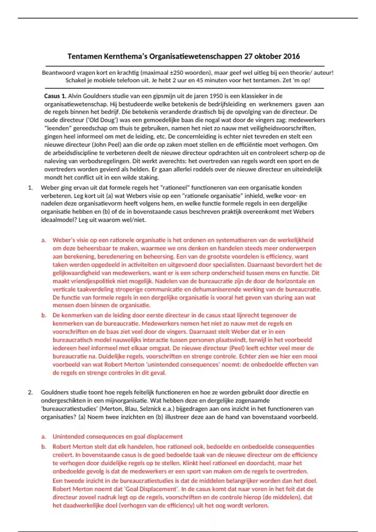 Tentamen Kernthema’s Organisatiewetenschappen 27 oktober 2016