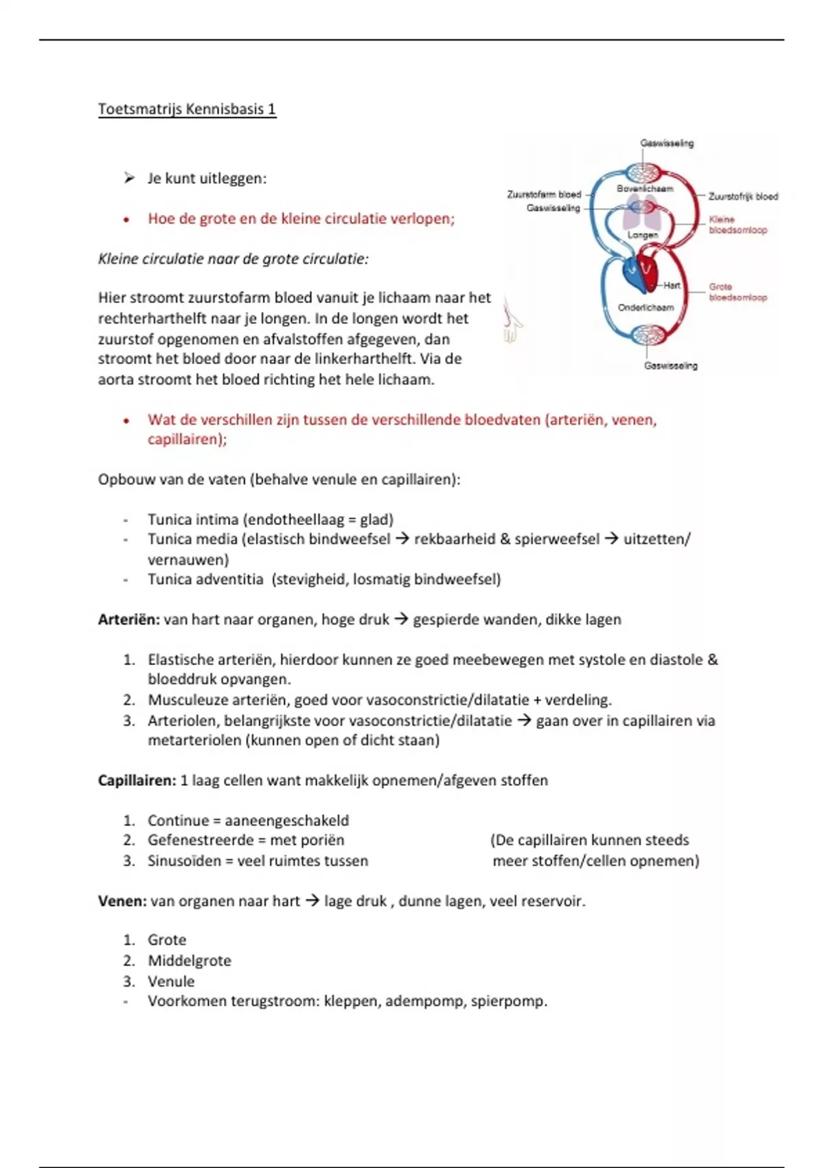 • Wat de verschillen zijn tussen de verschillende bloedvaten (arteriën, venen,
