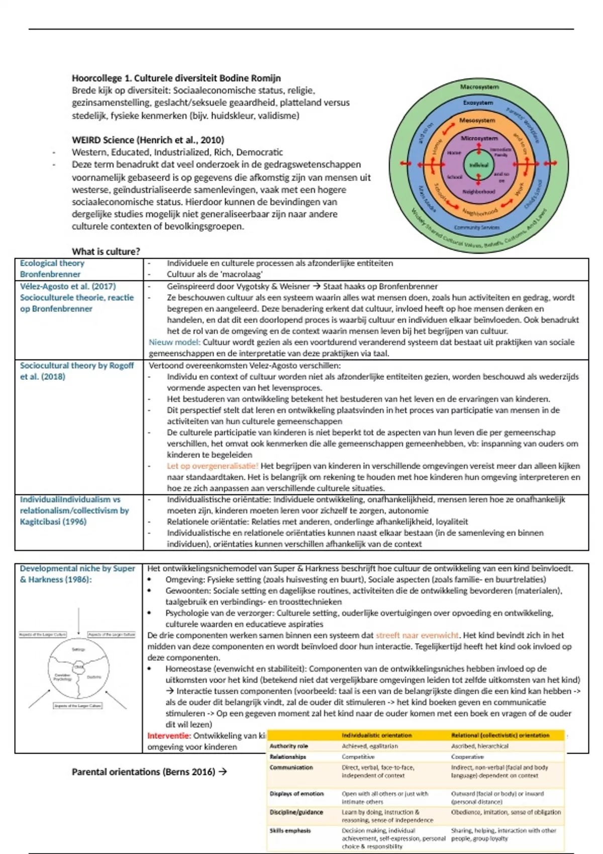  Psychologie van de verzorger: Culturele setting, ouderlijke overtuigingen over opvoeding en ontwikkeling,