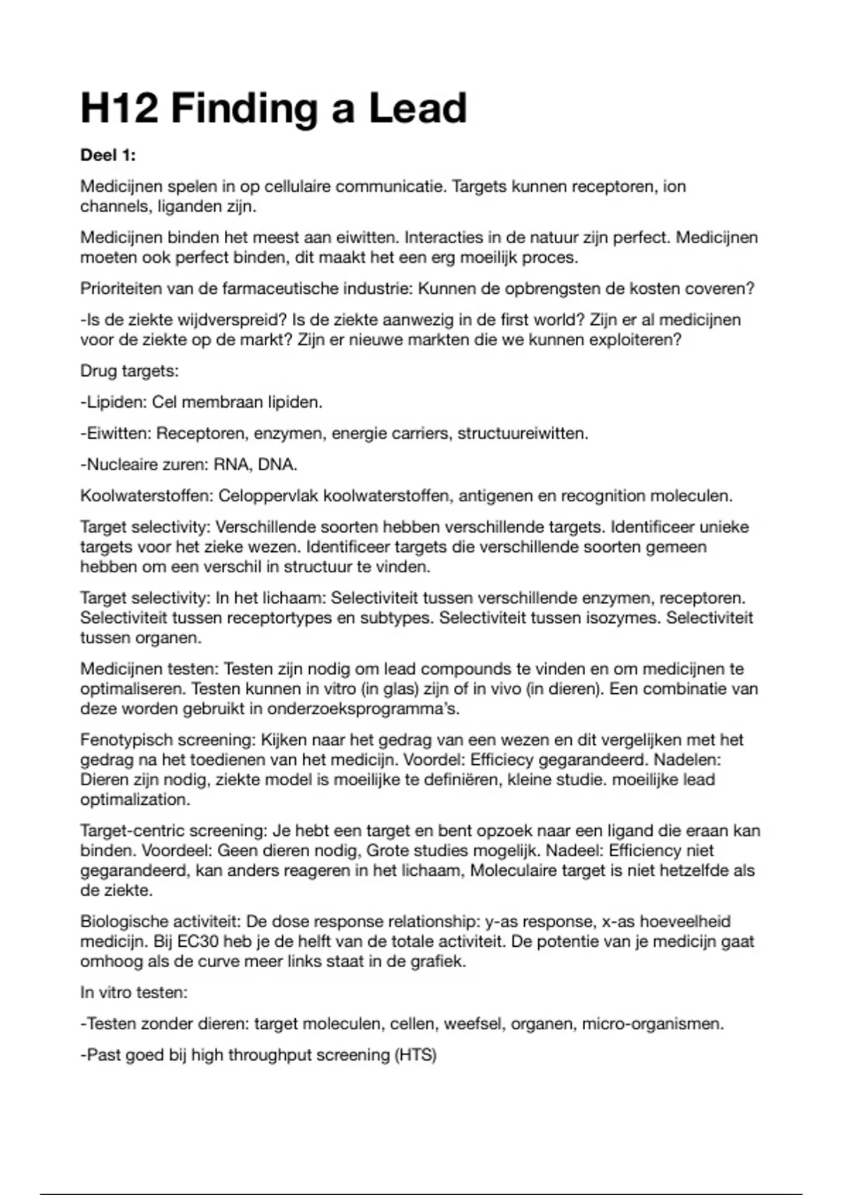 Dit is een samenvatting van alle colleges van het vak van molecuul tot medicijn.