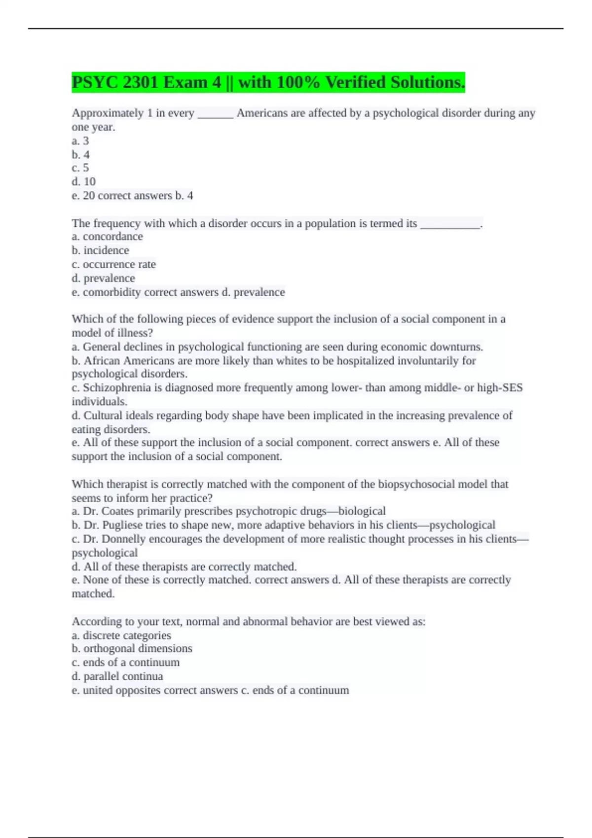 e. Schizophrenia usually begins in childhood. correct answers d. The prevalence of schizophrenia
