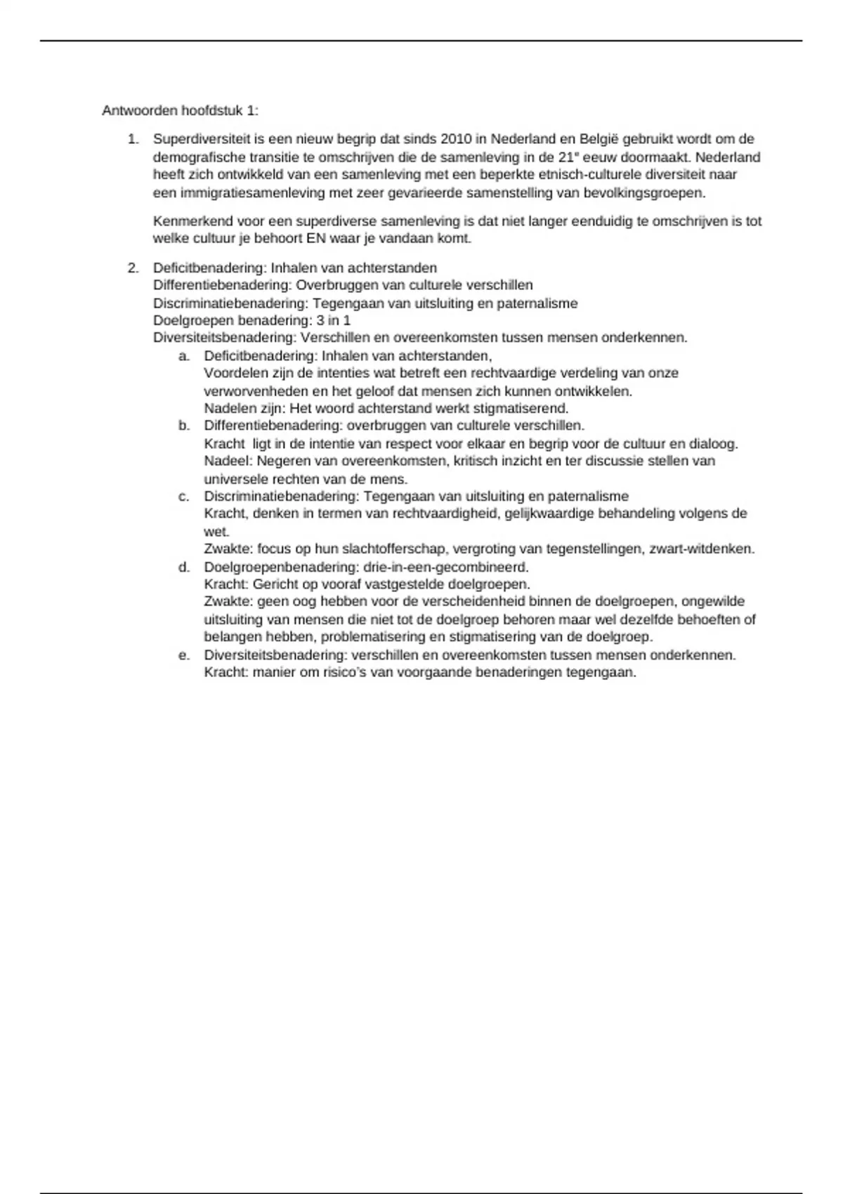 e. Diversiteitsbenadering: verschillen en overeenkomsten tussen mensen onderkennen.