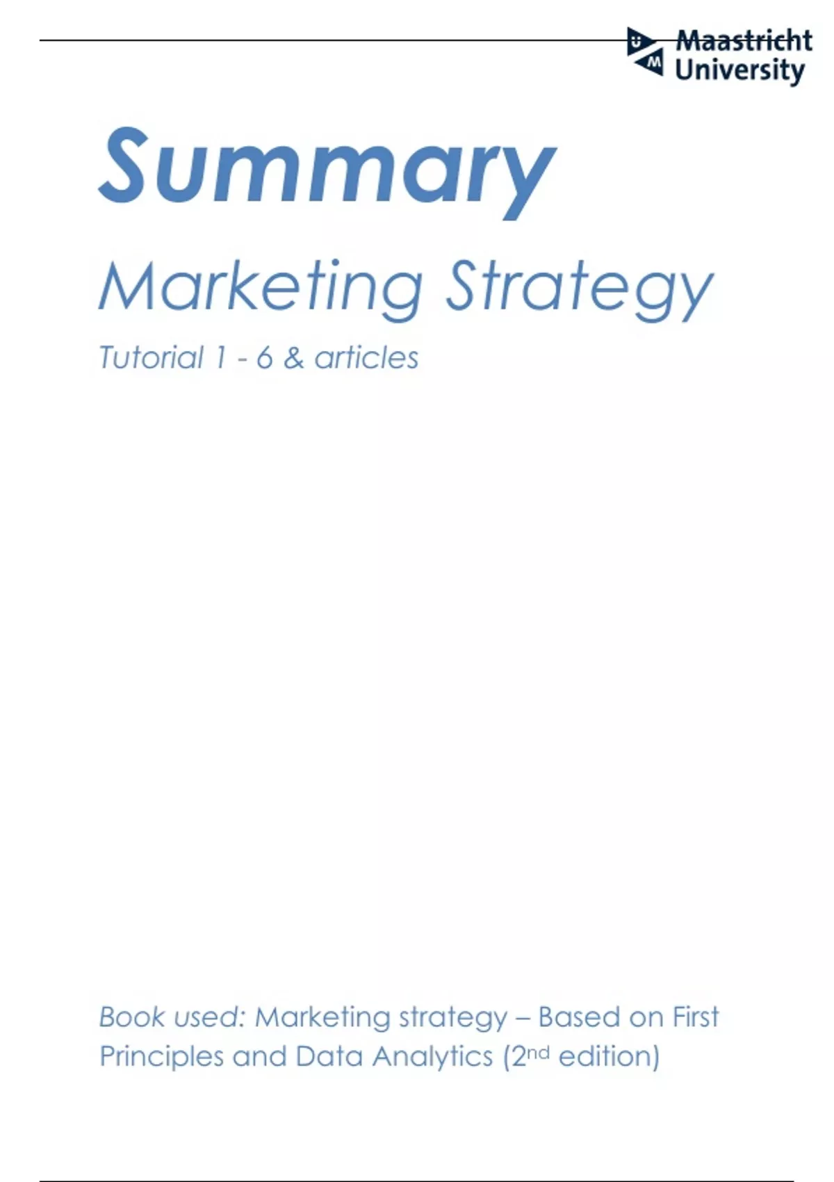 Marketing Strategy & Practice summary of tutorials, articles and book chapters