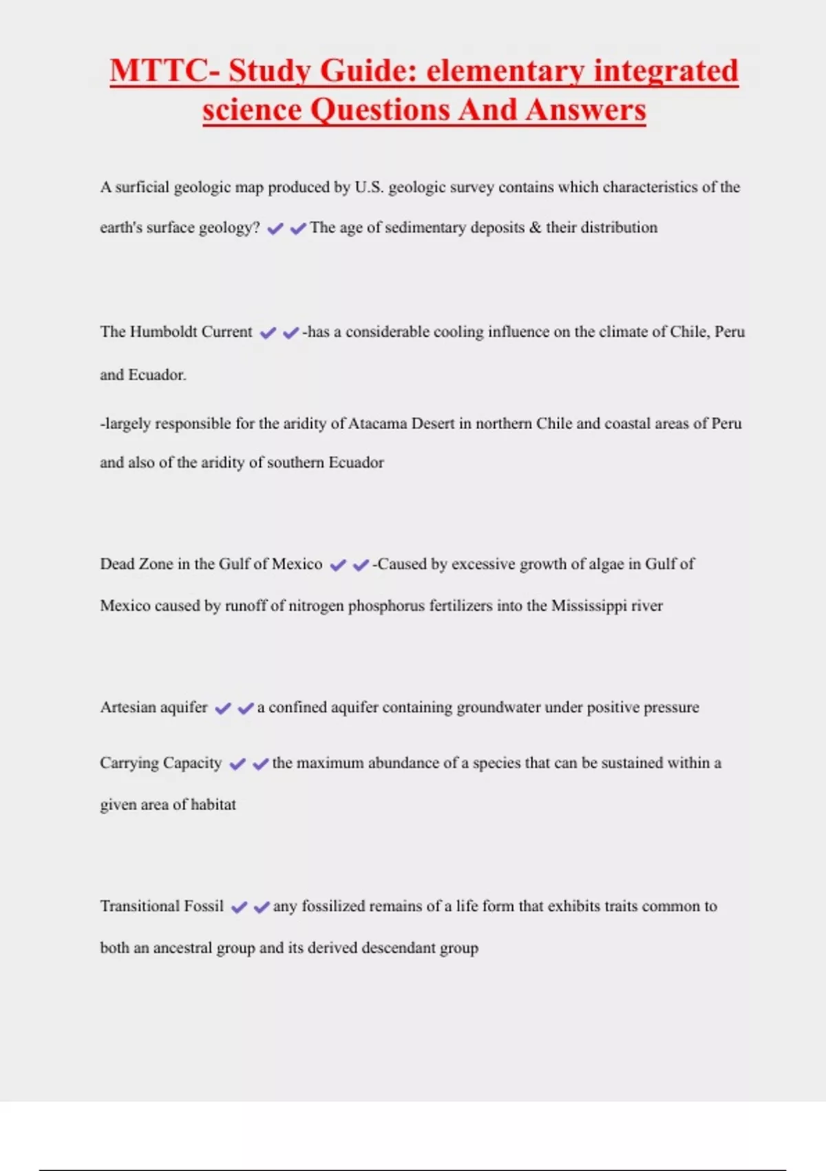 MTTC- Study Guide: elementary integrated science Questions And Answers