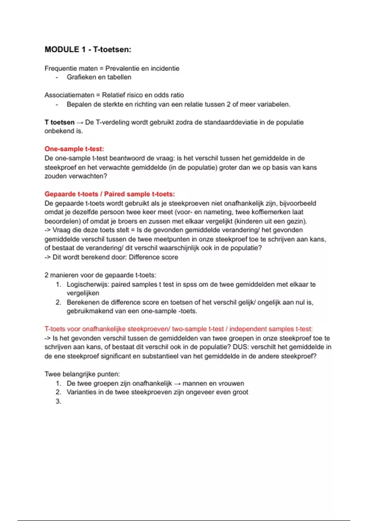 MODULE 1 - T-toetsen:
