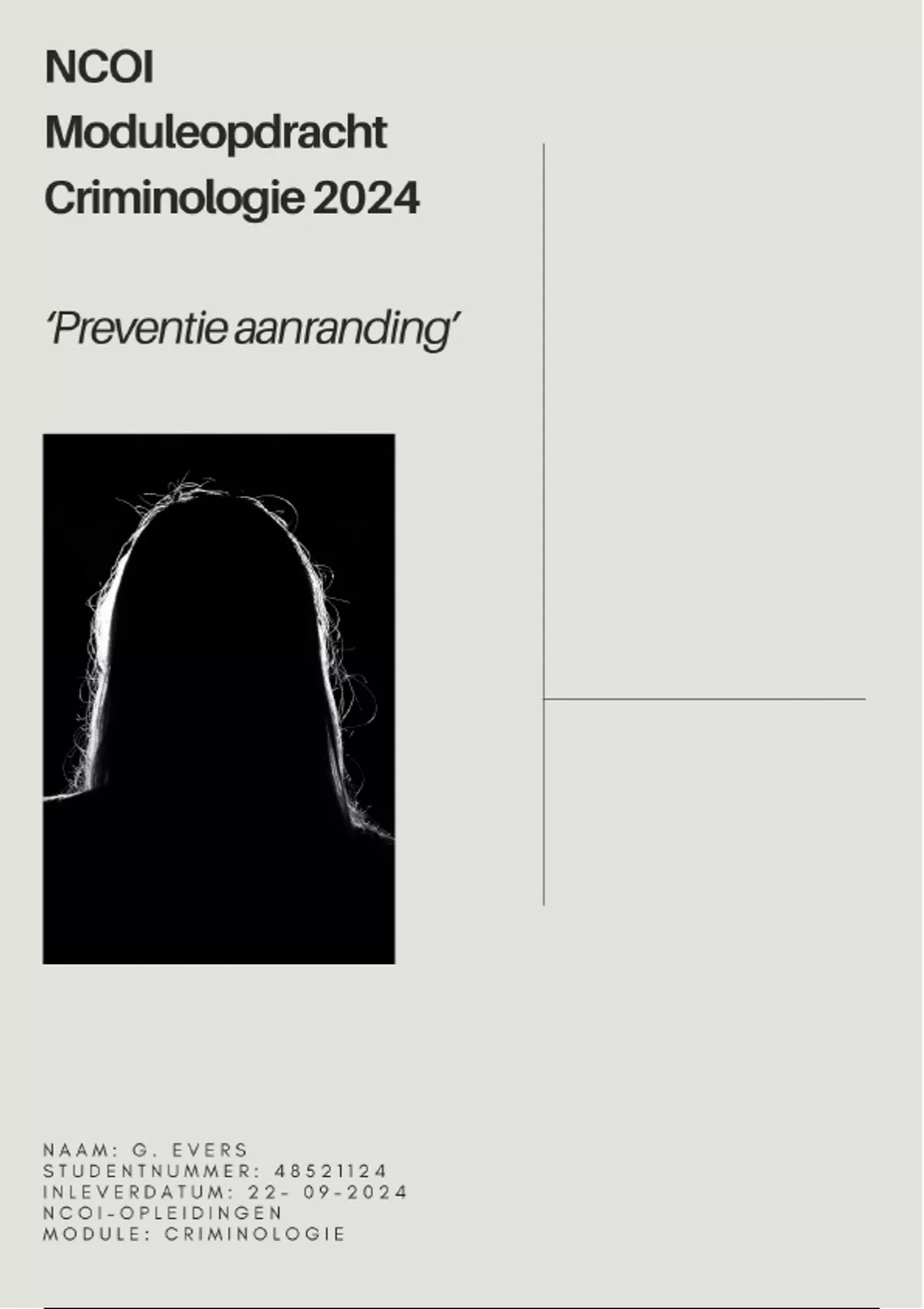 Voor de moduleopdracht behorend bij de opleiding Criminologie, heb ik als onderwerp: