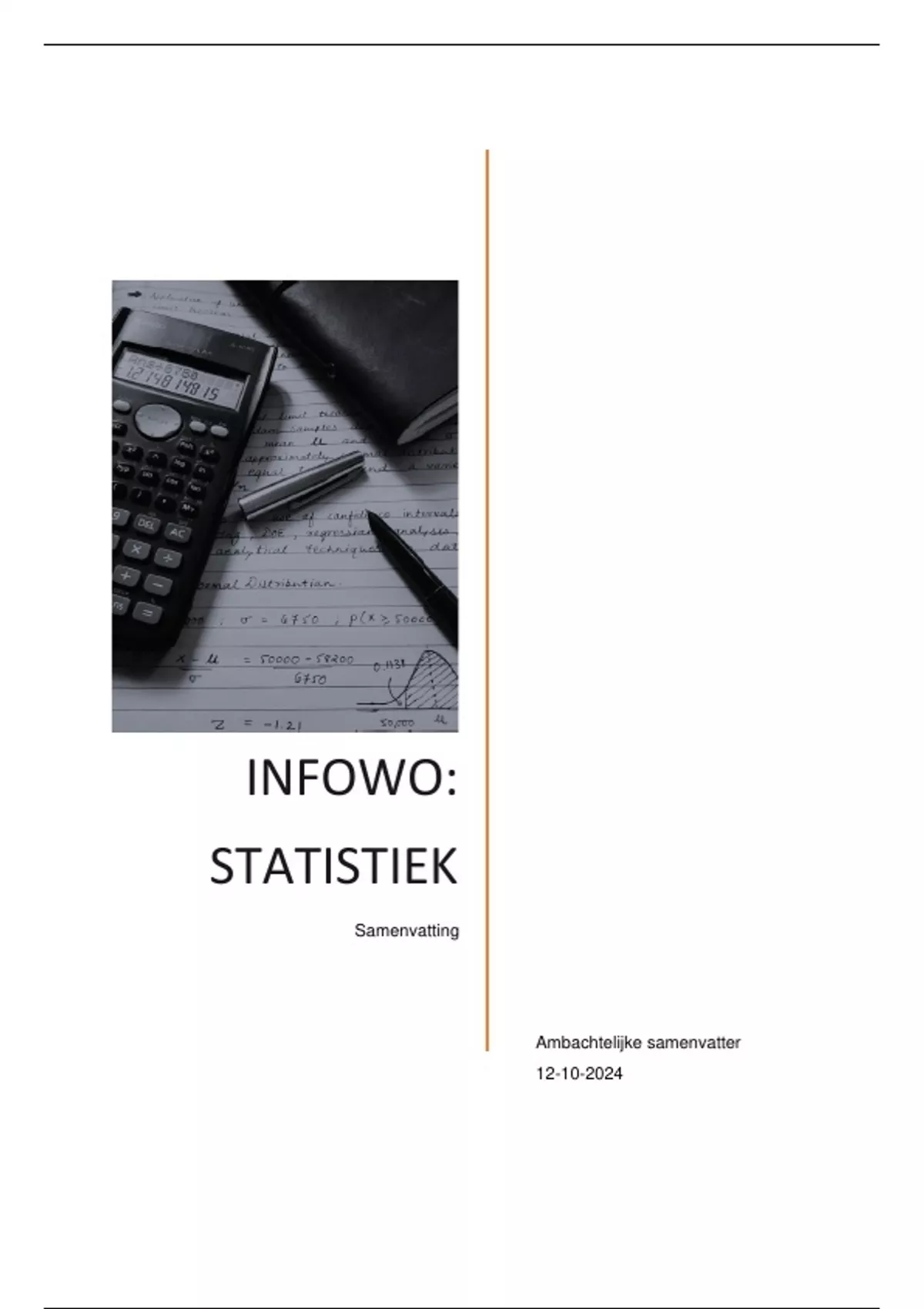 Deze Nederlands geschreven samenvatting statistiek geeft een goed overzicht van alle basisstatistiek voor onderzoek. Met deze samenvatting kan je net als ik gemakkelijk een 8+ binnenslepen.