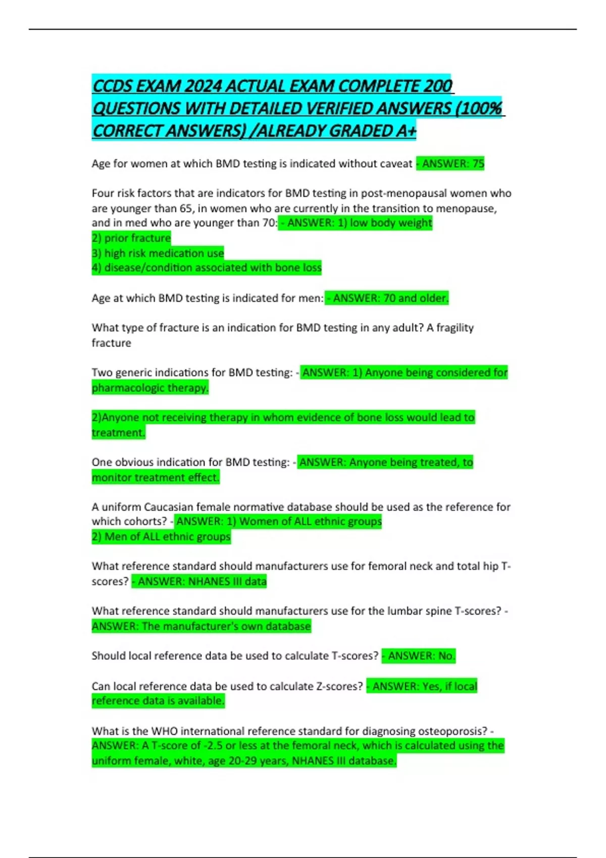 CCDS EXAM 2024 ACTUAL EXAM COMPLETE 200