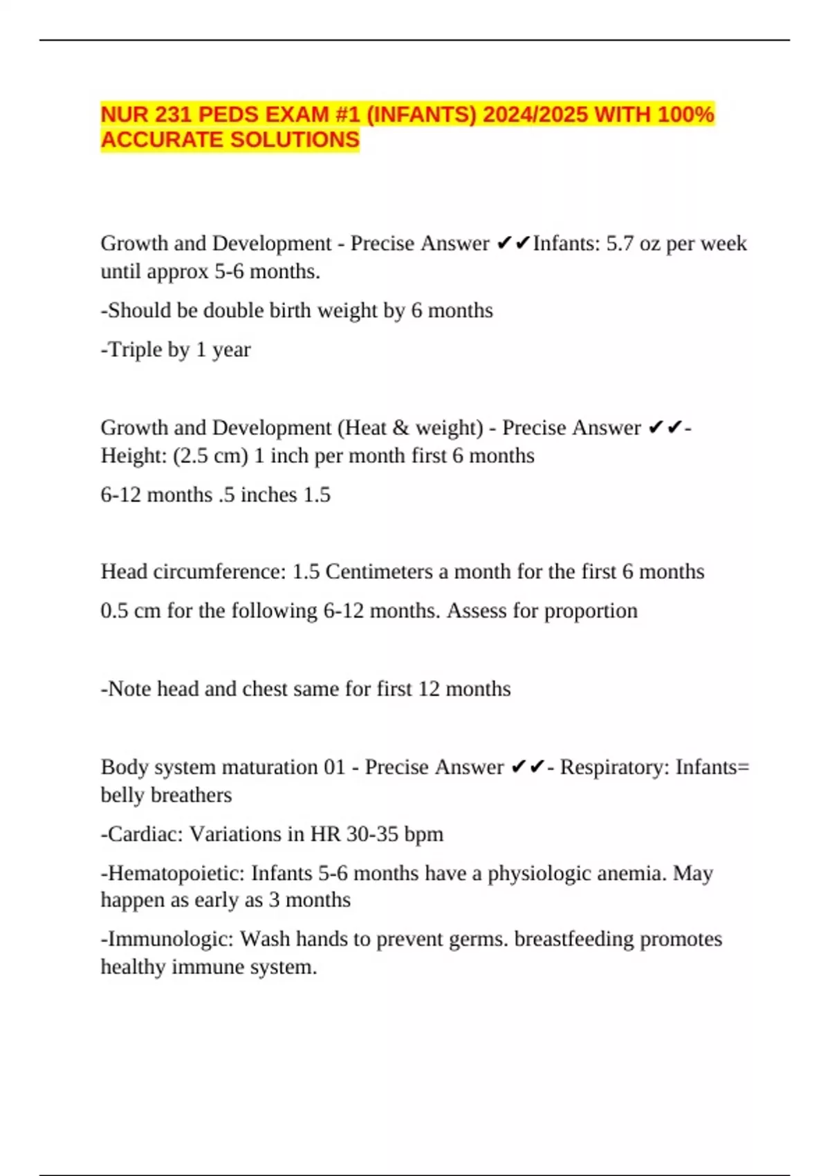 NUR 231 PEDS EXAM #1 (INFANTS) 2024/2025 WITH 100% ACCURATE SOLUTIONS