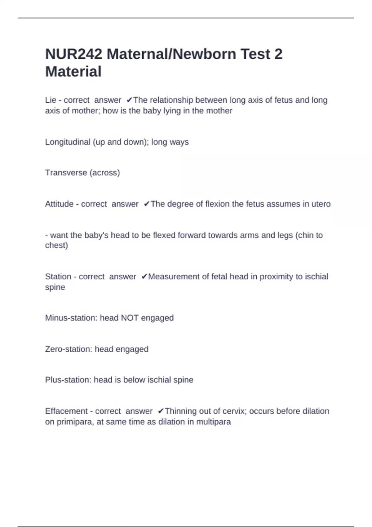 Station - correct answer ✔Measurement of fetal head in proximity to ischial