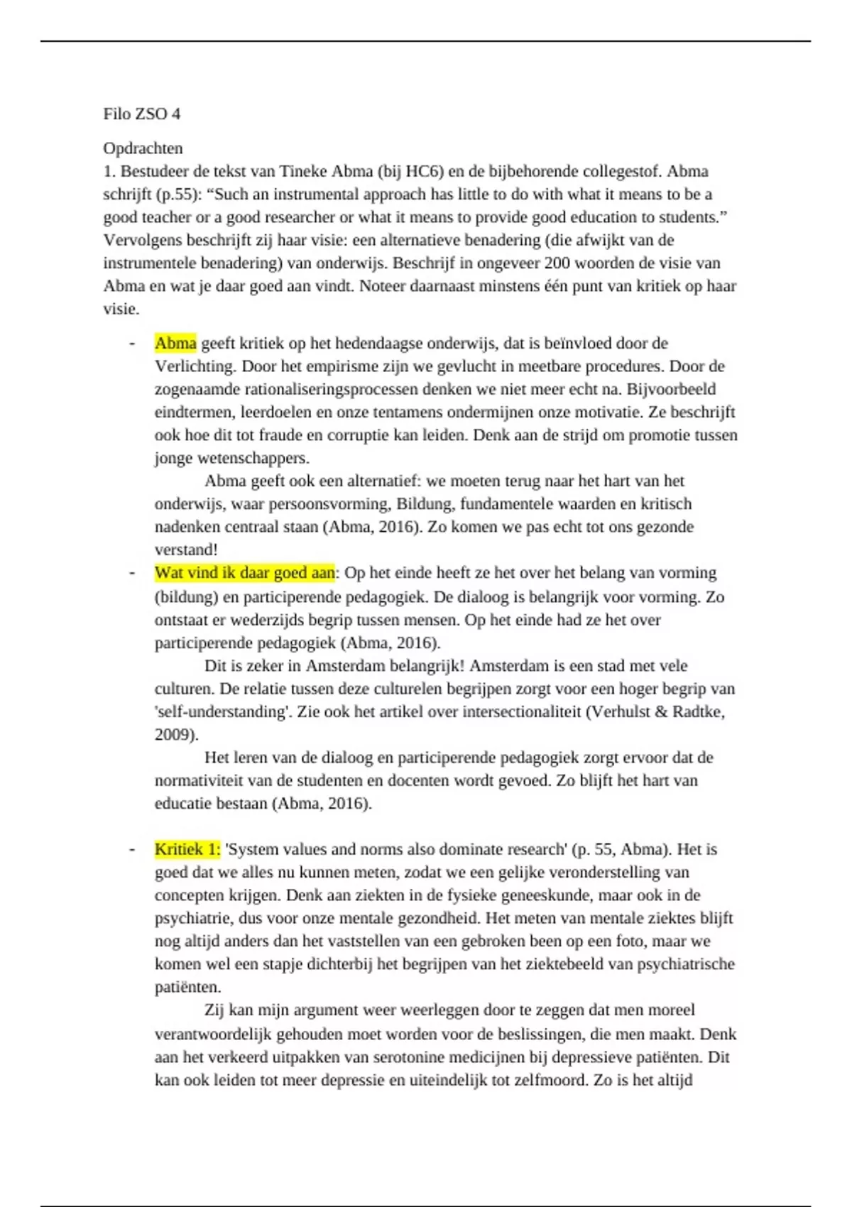 1. Bestudeer de tekst van Tineke Abma (bij HC6) en de bijbehorende collegestof. Abma
