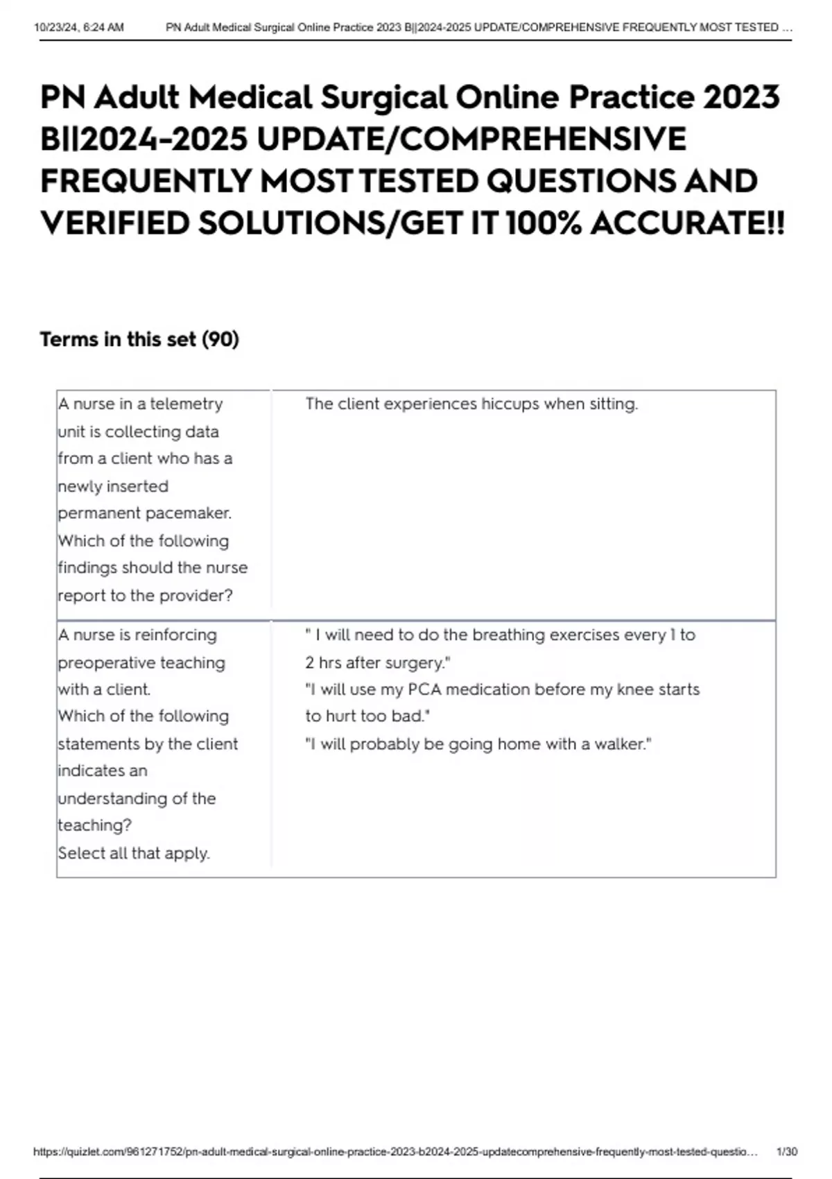 https://quizlet.com/961271752/pn-adult-medical-surgical-online-practice-2023-b2024-2025-updatecomprehensive-frequently-most-tested-questio… 1/30