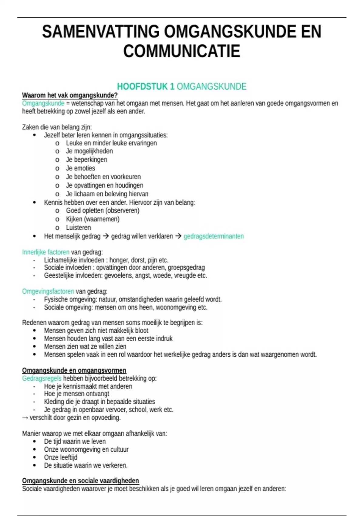 SAMENVATTING OMGANGSKUNDE EN