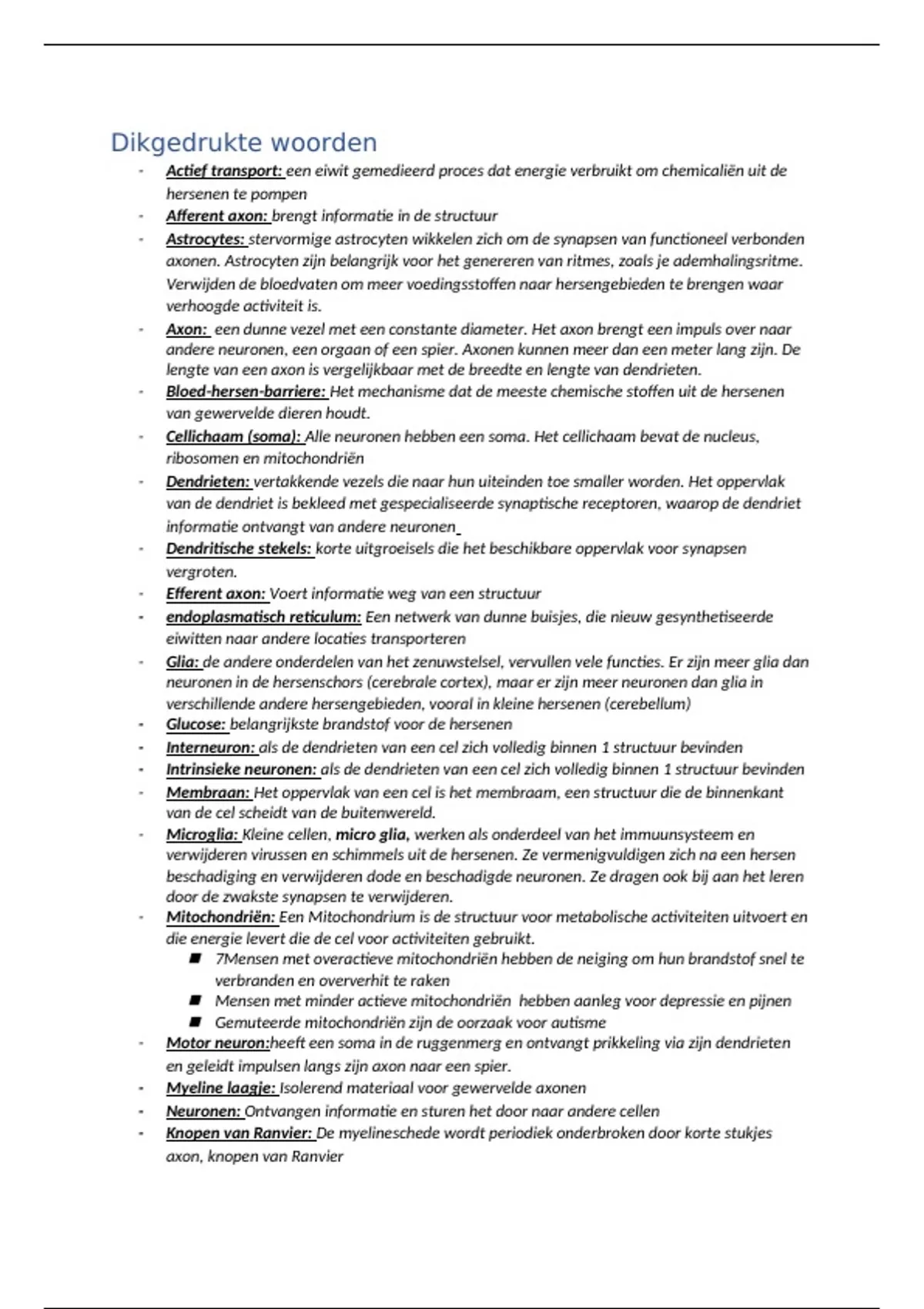 - Axon: een dunne vezel met een constante diameter. Het axon brengt een impuls over naar
