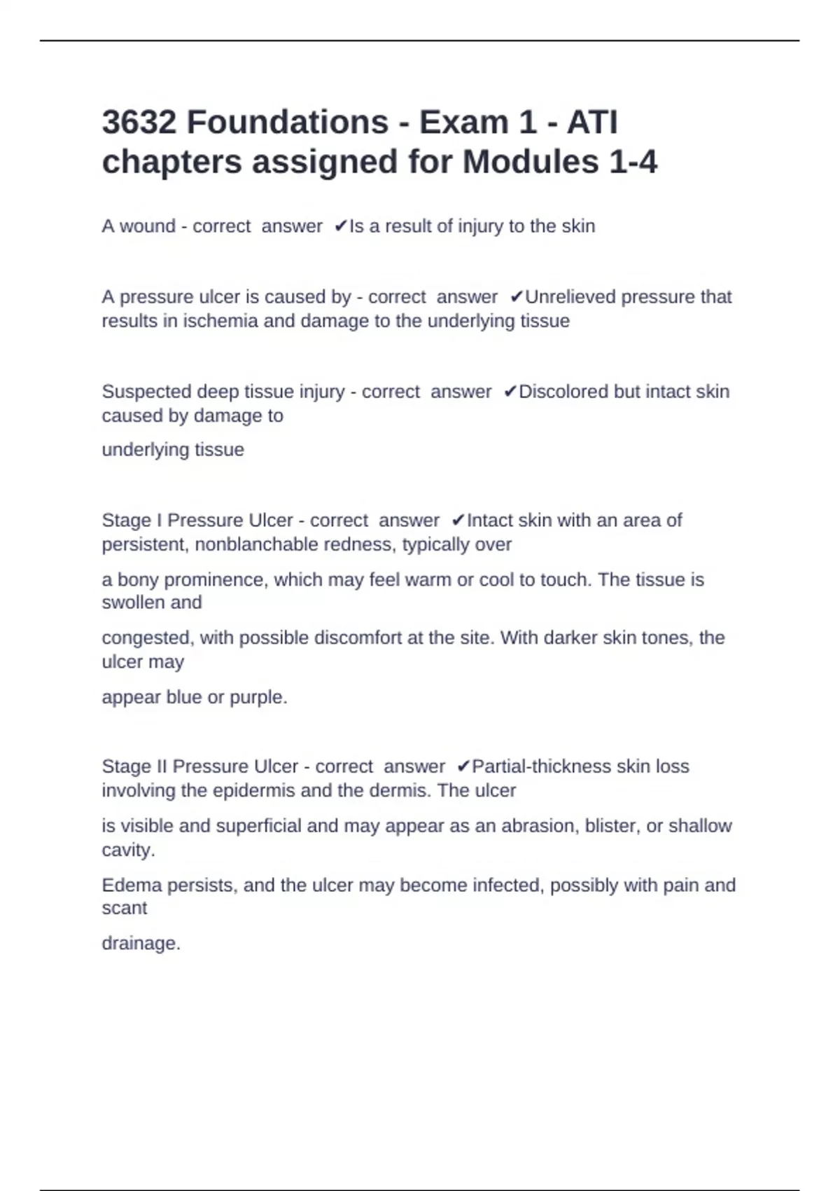 Stage II Pressure Ulcer - correct answer ✔Partial-thickness skin loss