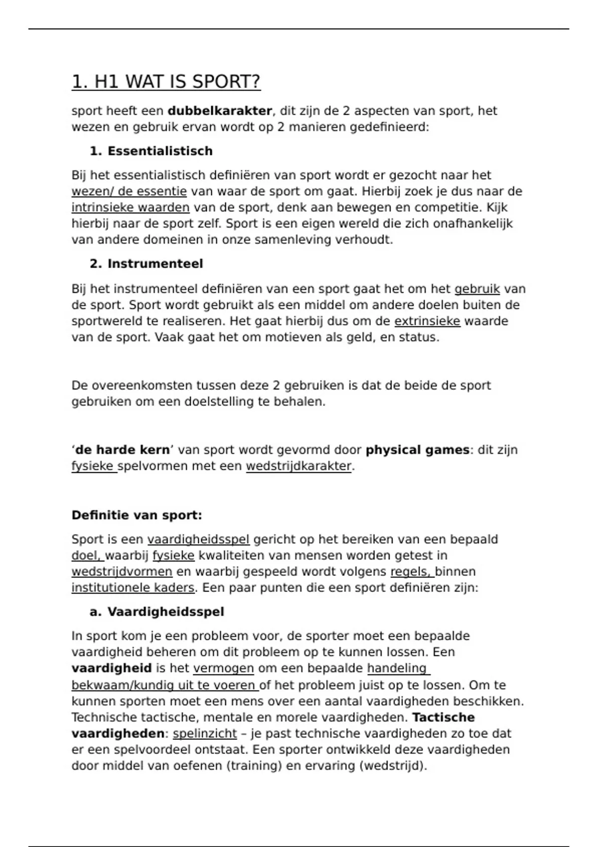institutionele kaders. Een paar punten die een sport definiëren zijn: