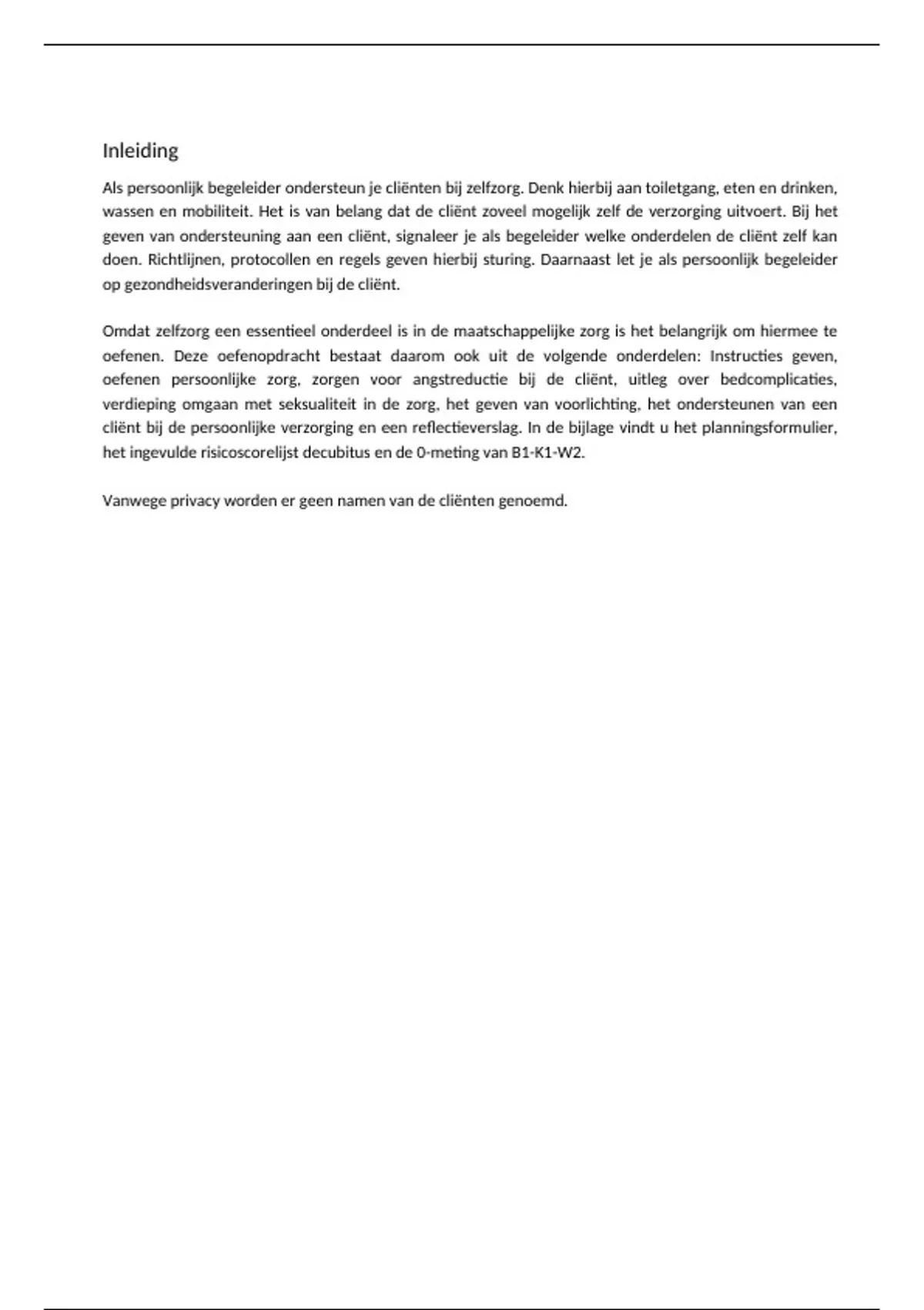cliënt bij de persoonlijke verzorging en een reflectieverslag. In de bijlage vindt u het planningsformulier,