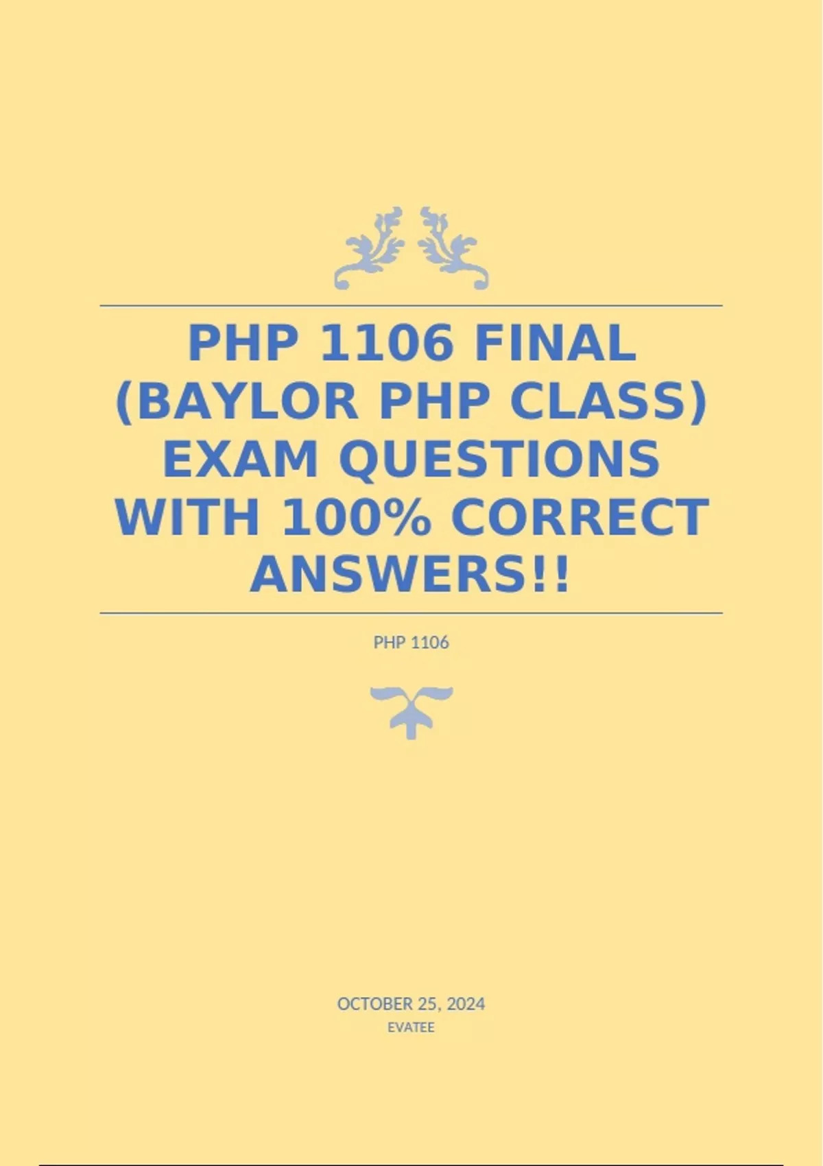 , PHP 1106 FINAL (BAYLOR PHP CLASS) EXAM