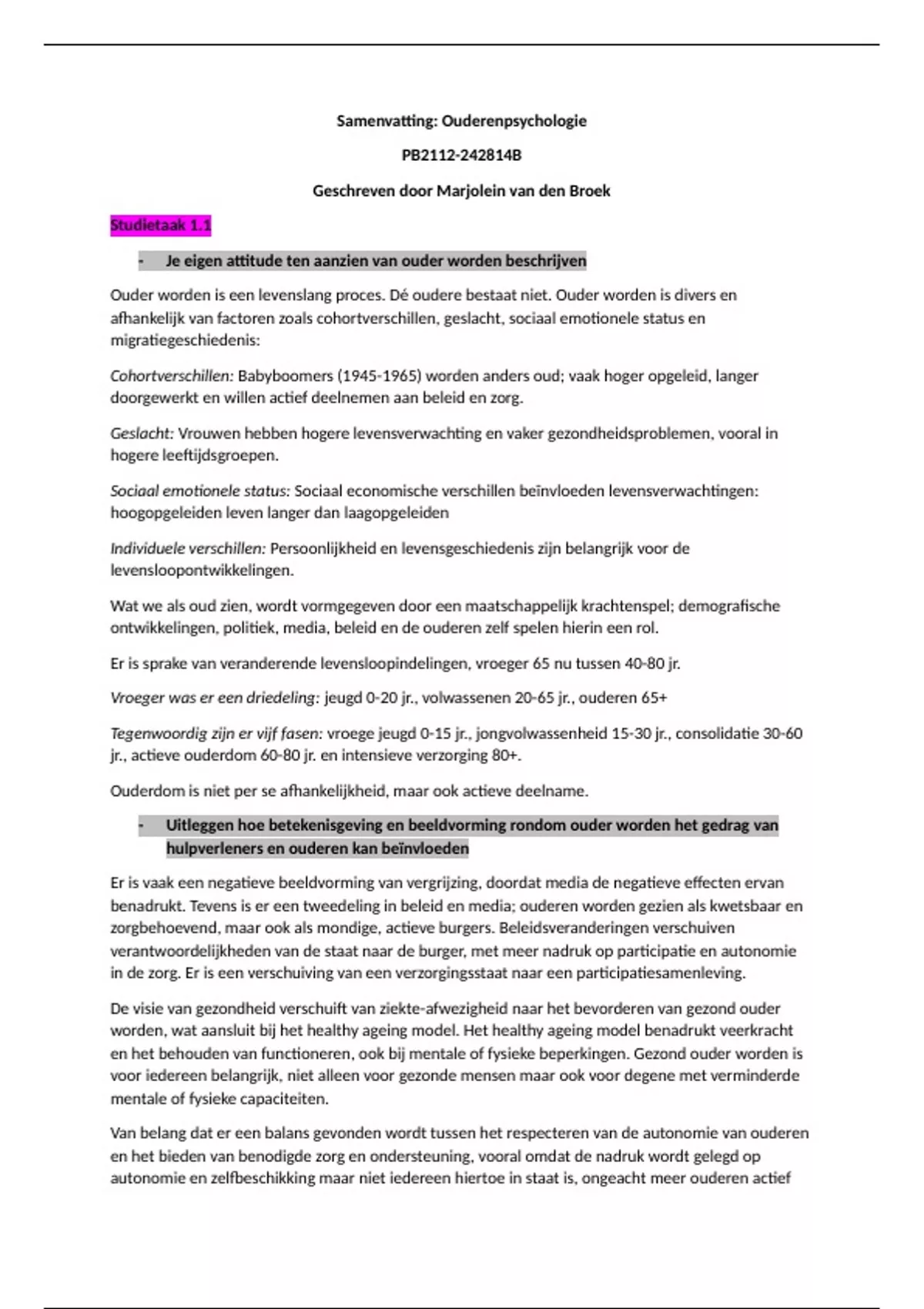 Samenvatting Ouderenpsychologie PB2112-242814B