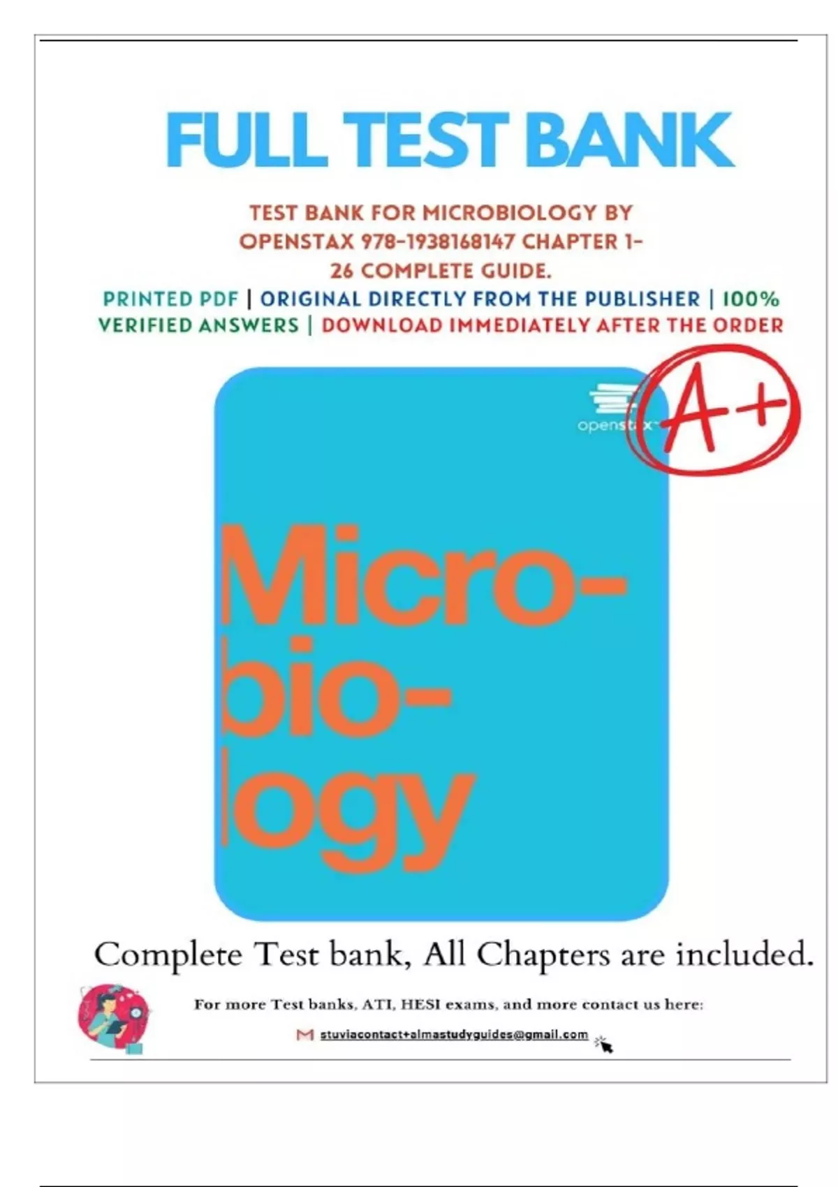 Test Bank For Microbiology by OpenStax 978-1938168147 ||Chapter 1-26 ||Complete A+Guide.