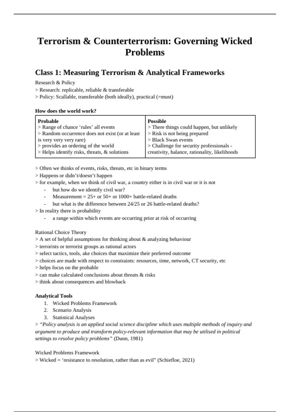 Class 1: Measuring Terrorism & Analytical Frameworks