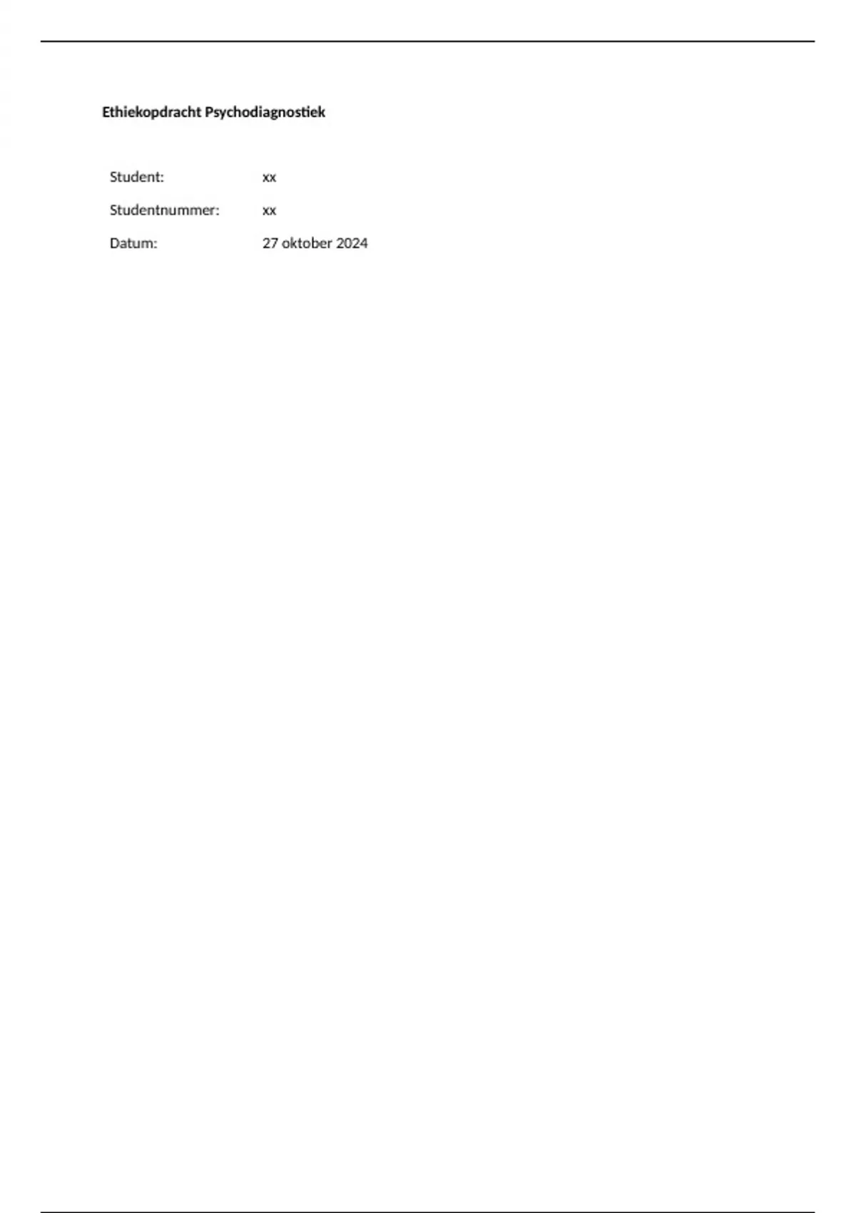 Ethiekopdracht in de Klinische psychologie. Vakcode: PMH001. Gebruik dit verslag ter inspiratie voor je eigen verslag.