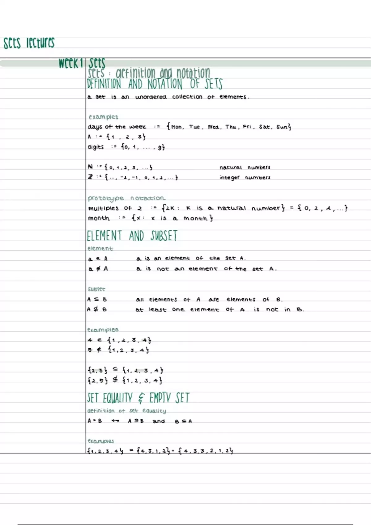 week 1 Sets