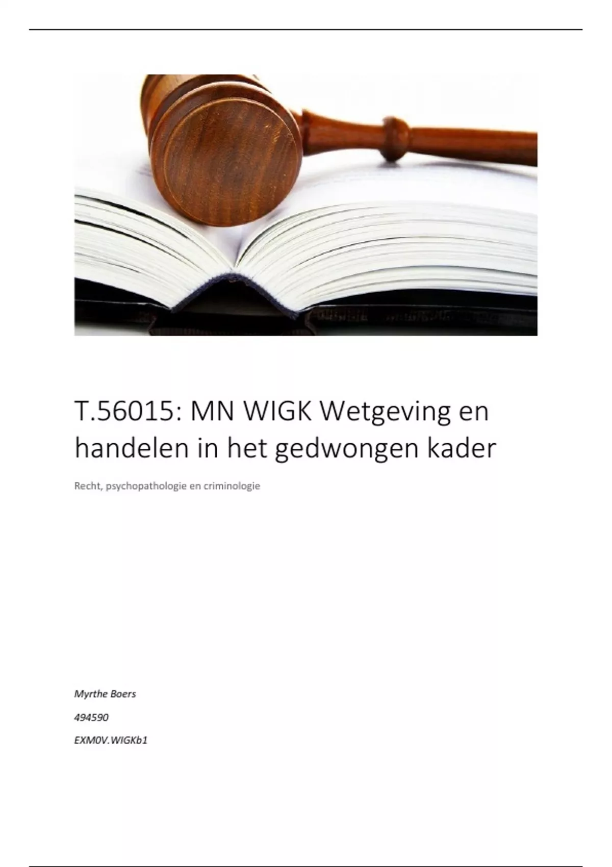 VERSLAG - T.56015 MN WIGK Wetgeving en handelen in het gedwongen kader.