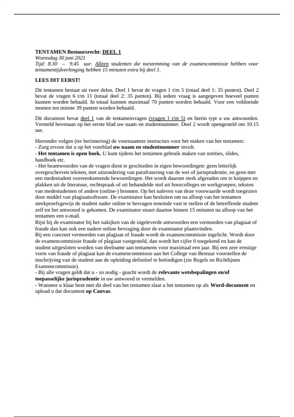 Dit tentamen bestaat uit twee delen. Deel 1 bevat de vragen 1 t/m 5 (totaal deel 1: 35 punten). Deel 2