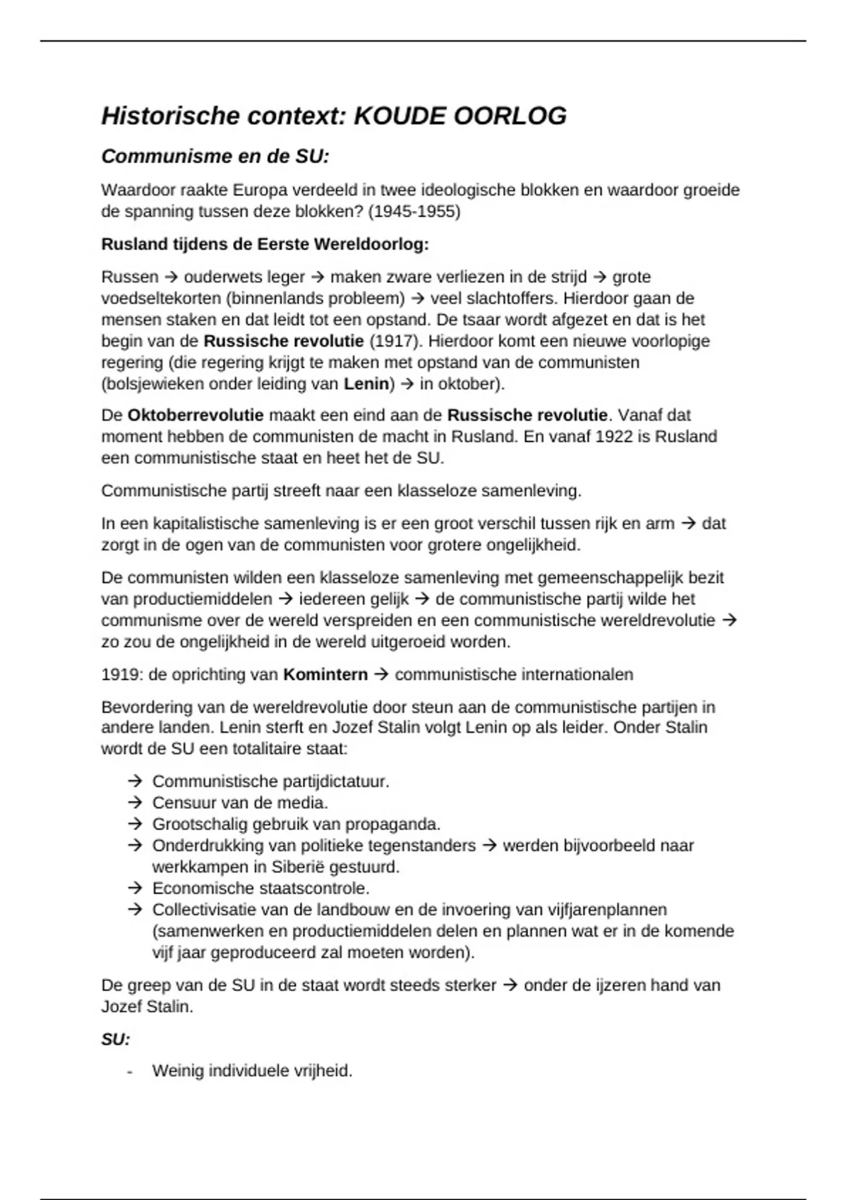 Geschiedenis Samenvatting Koude Oorlog VWO6