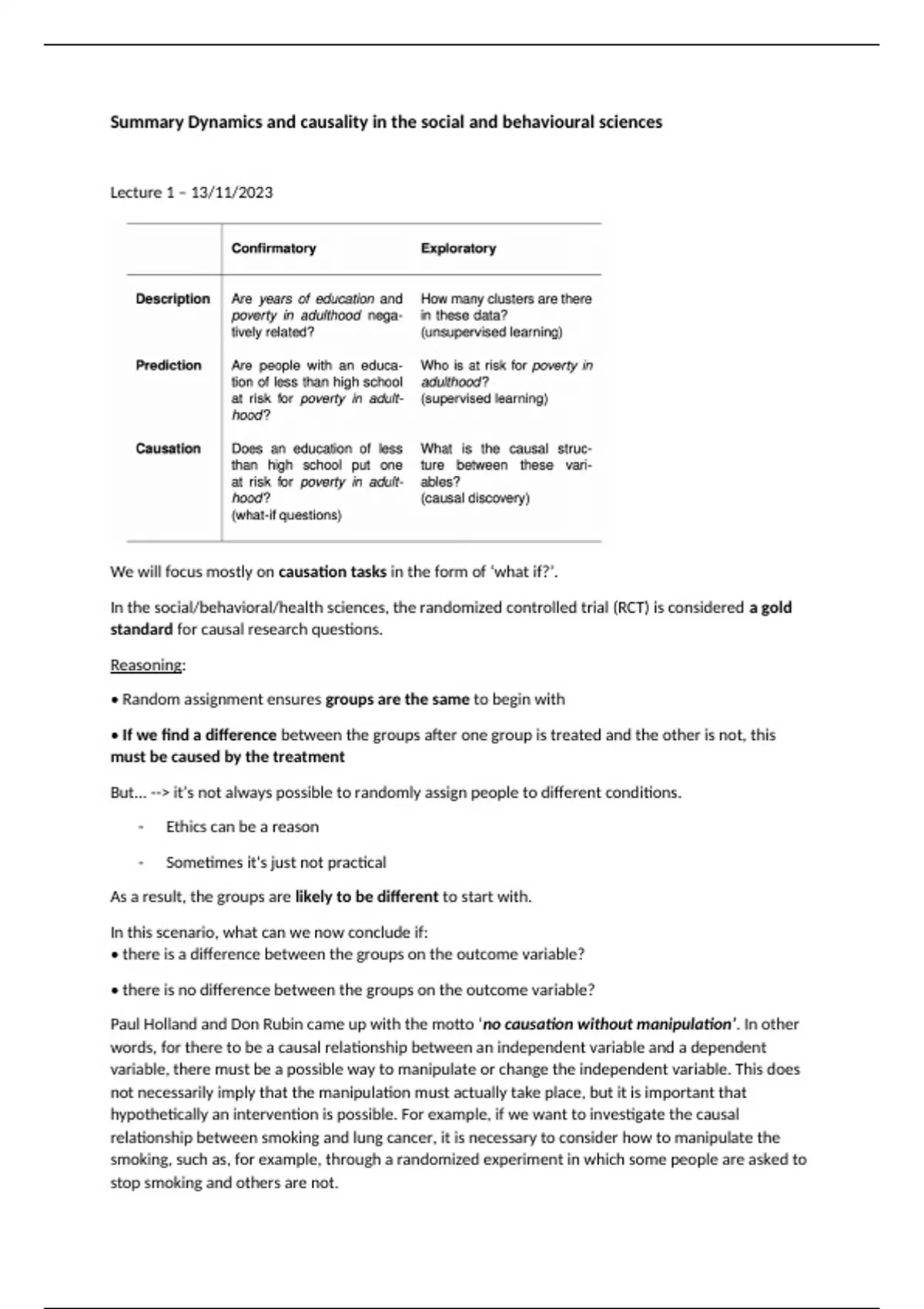 Very complete lecture Notes Dynamics and causality in the social and behavioural sciences (INFOMDCSBS)