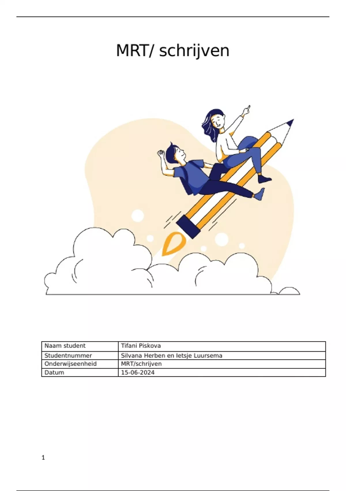 Mijn volledige MRT/schrijven verslag behaald met een 6,6. Ook de leeruitkomsten verslag is inbegrepen.